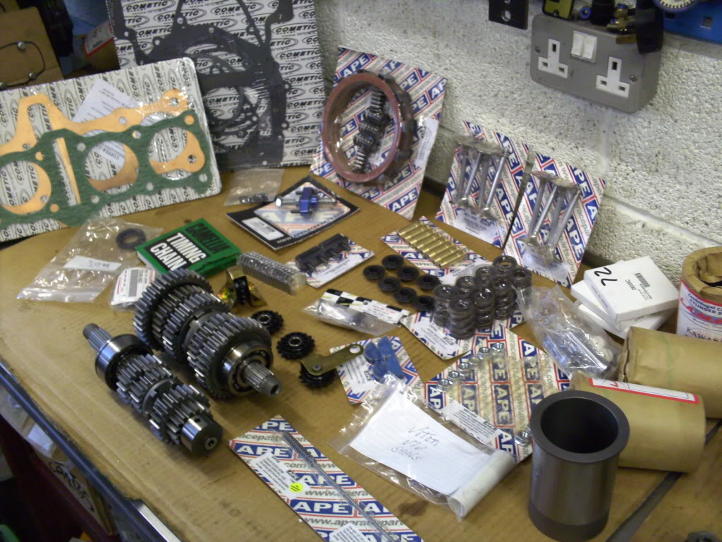After very close inspection most of the engine parts are either worn out , unsuitable or just plain buggered and all the usable parts that don't need any major work are in this pic and are mainly from the spare engine.