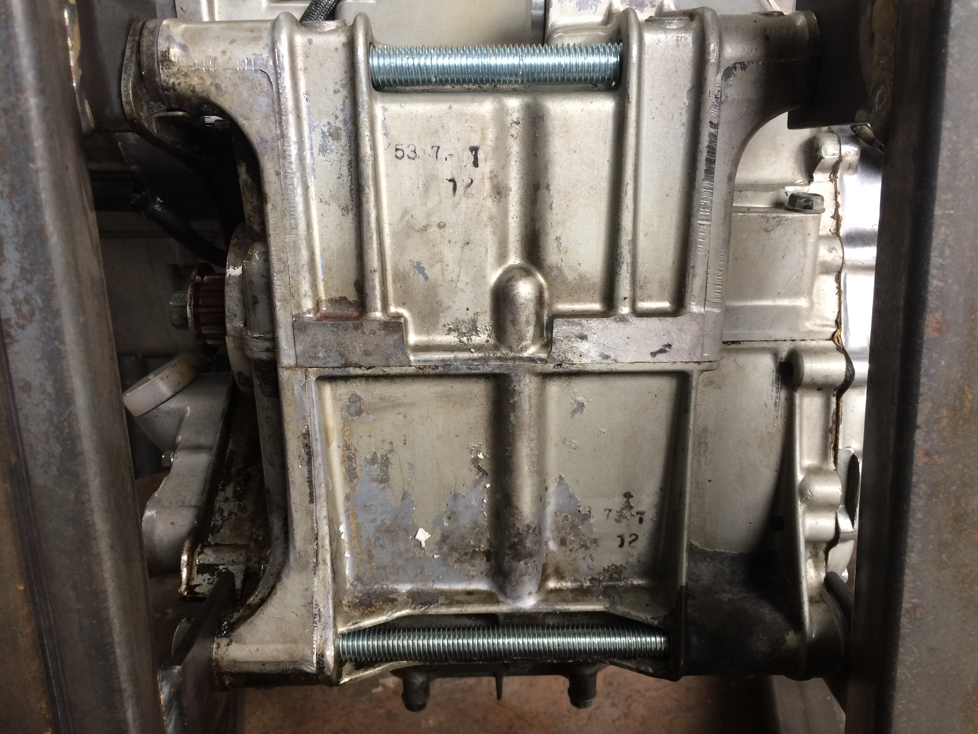 The original engine had figures printed onto the rear of the motor, these were the engine assembly date - on the picture below you can see them. Obviously the ones printed at the factory were removed when the motor was vapour blasted.