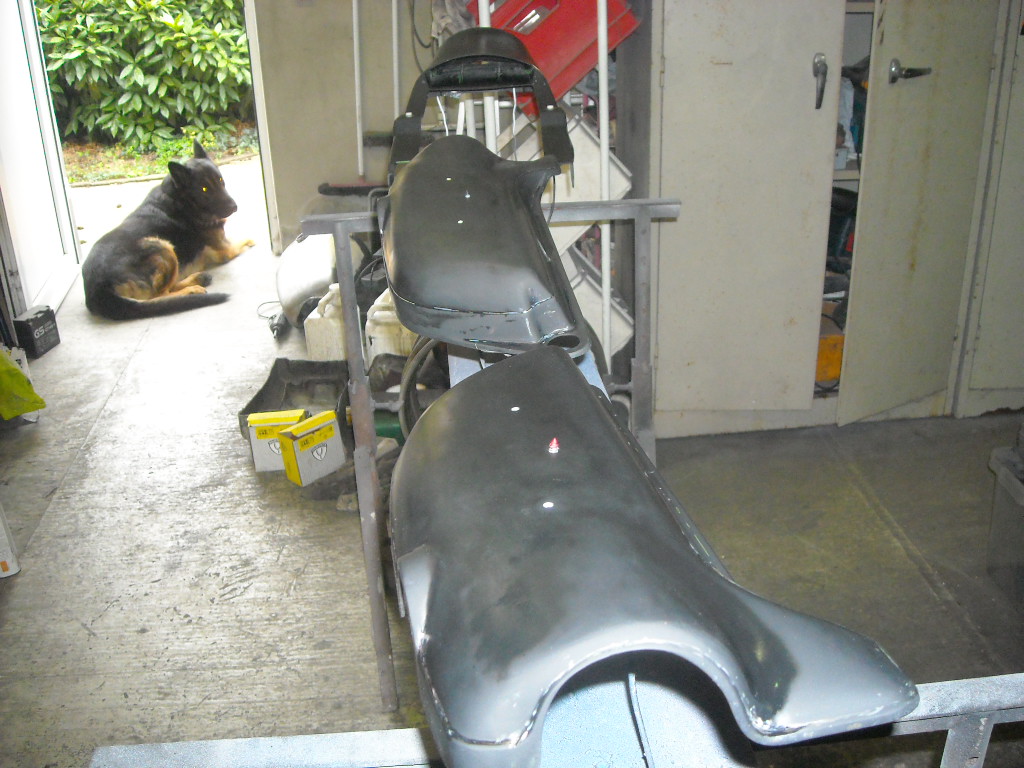 I decided I would continue with the body work for the Z1B. I had some spare parts including a fuel tank, side panels and a tail piece. Somewhere in the past somebody sprayed them as they were...