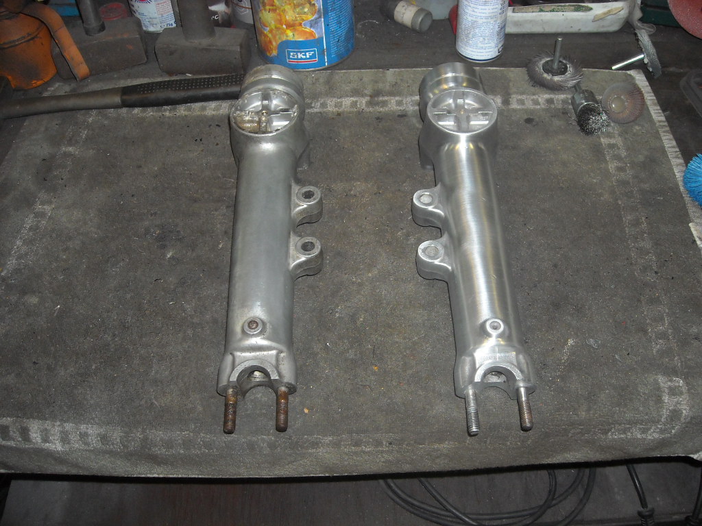 Take a look at the two fork stanchions, one is done, the other still needs a clean-up.