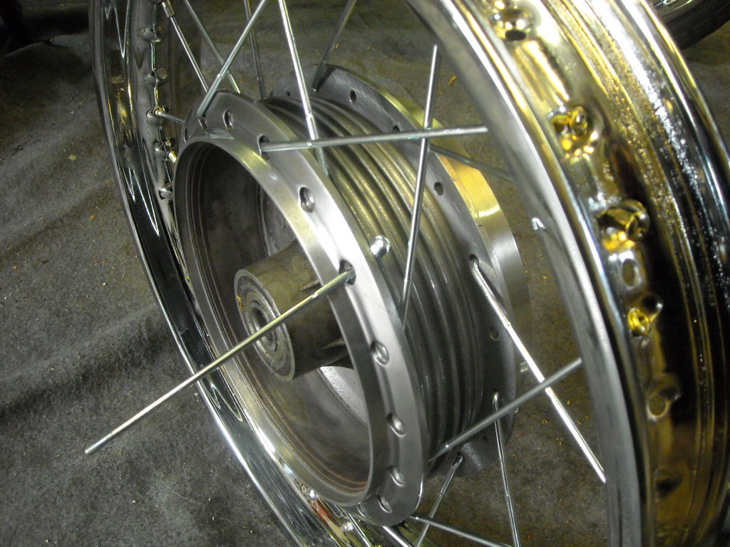 I started with the wheels. The rims are rechromed and the markings on them are still visible allthough ... it could have been better.