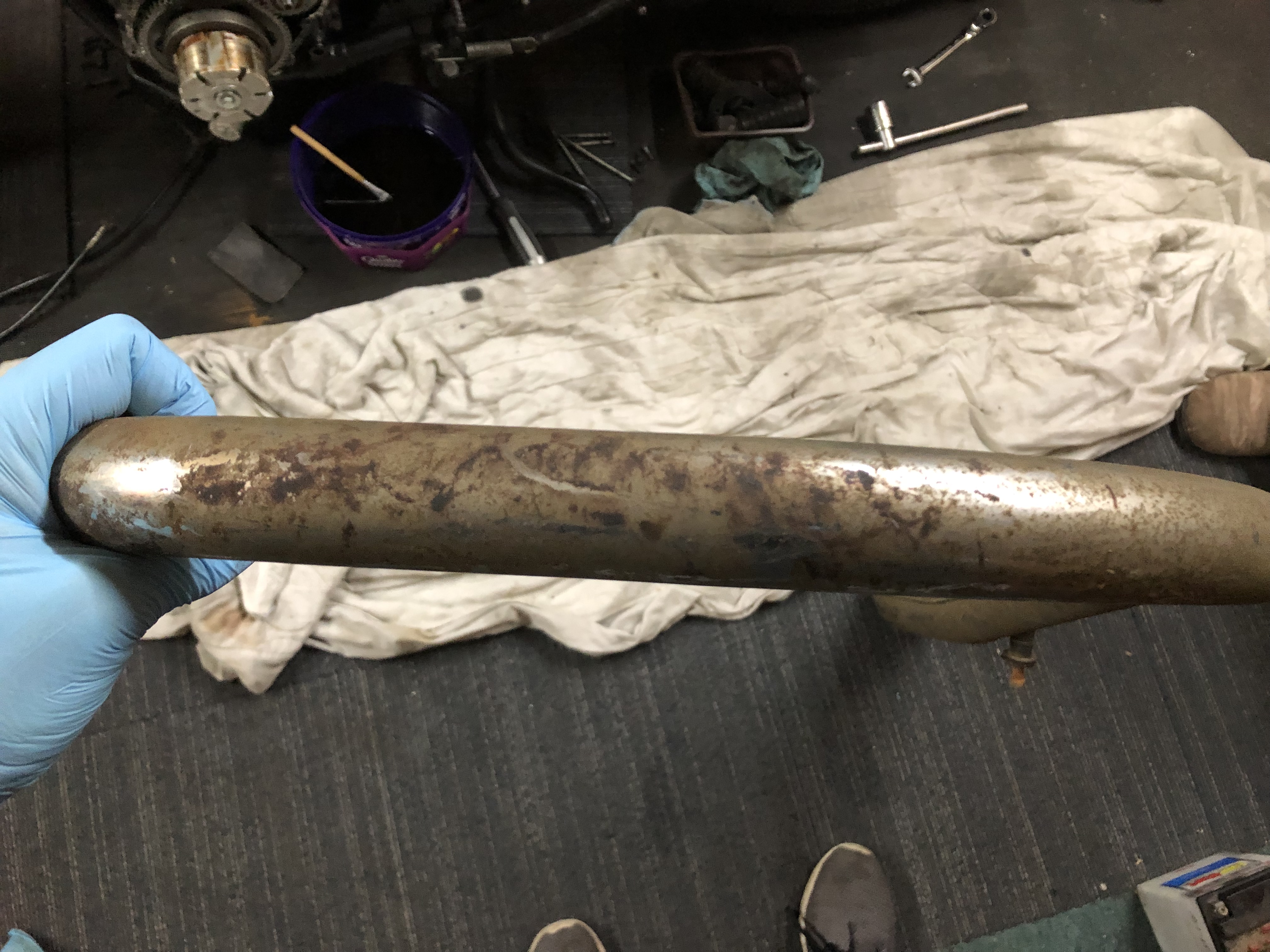 Hard surface rust was removed with a brass hand brush (light pressure applied with some WD40 as a lubricant). Given how rough they looked, I'm pleased with the results. I may well invest in a set of unstamped/no-clip pipes in the new year, but for now, these will do & fit the patina of the bike. Just a shame the lower RH pipe has some damage/rash. I imagine finding a correctly stamped, good condition replacement will be nigh-on impossible.