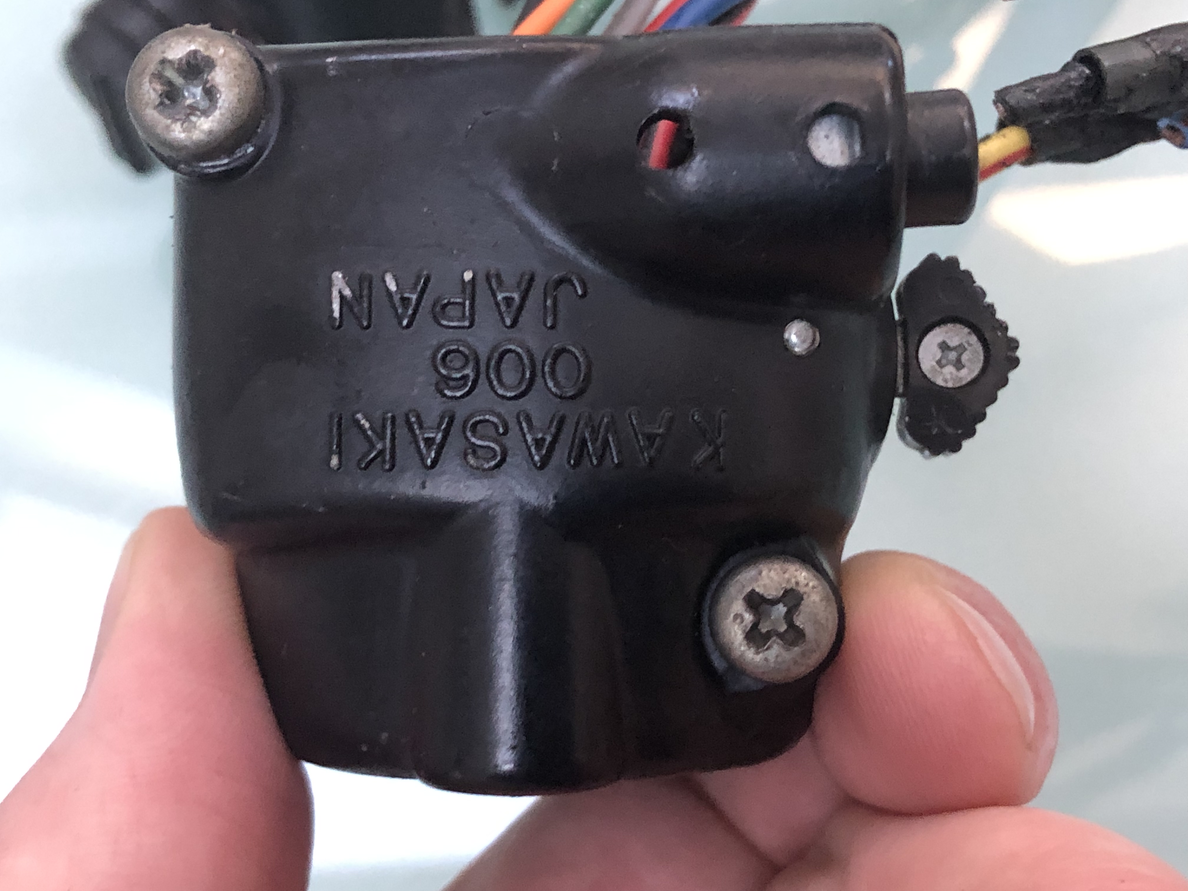 Refurbished switch gear re-fitted (thanks to Brown Critchlowe for doing these for me). Managed to source a NOS Kawasaki LH rocker switch to replace the broken original: