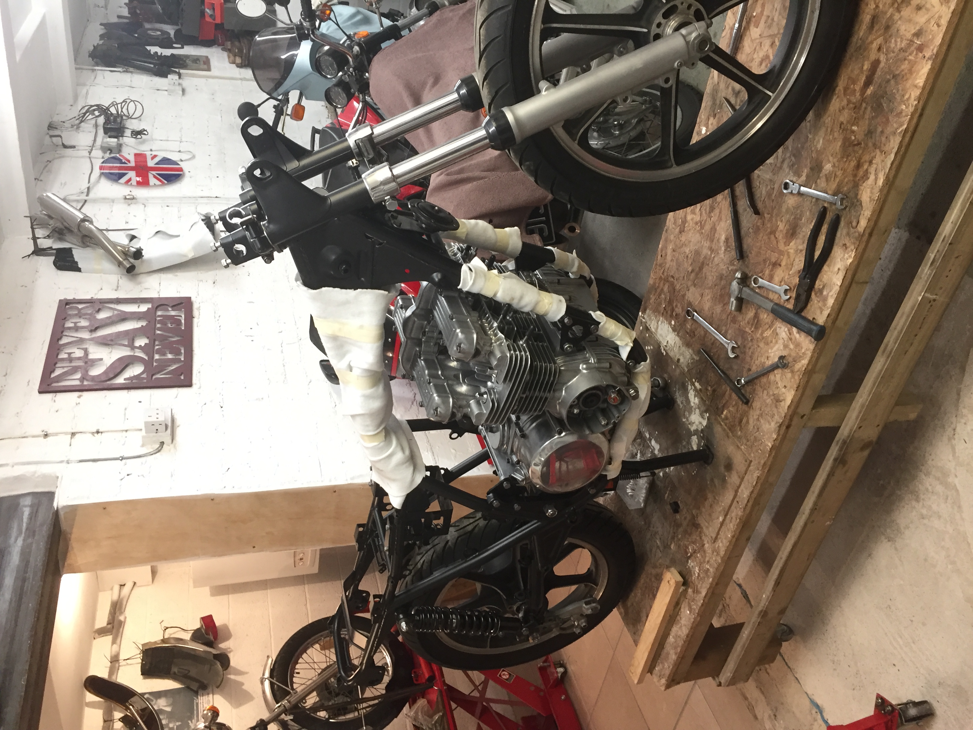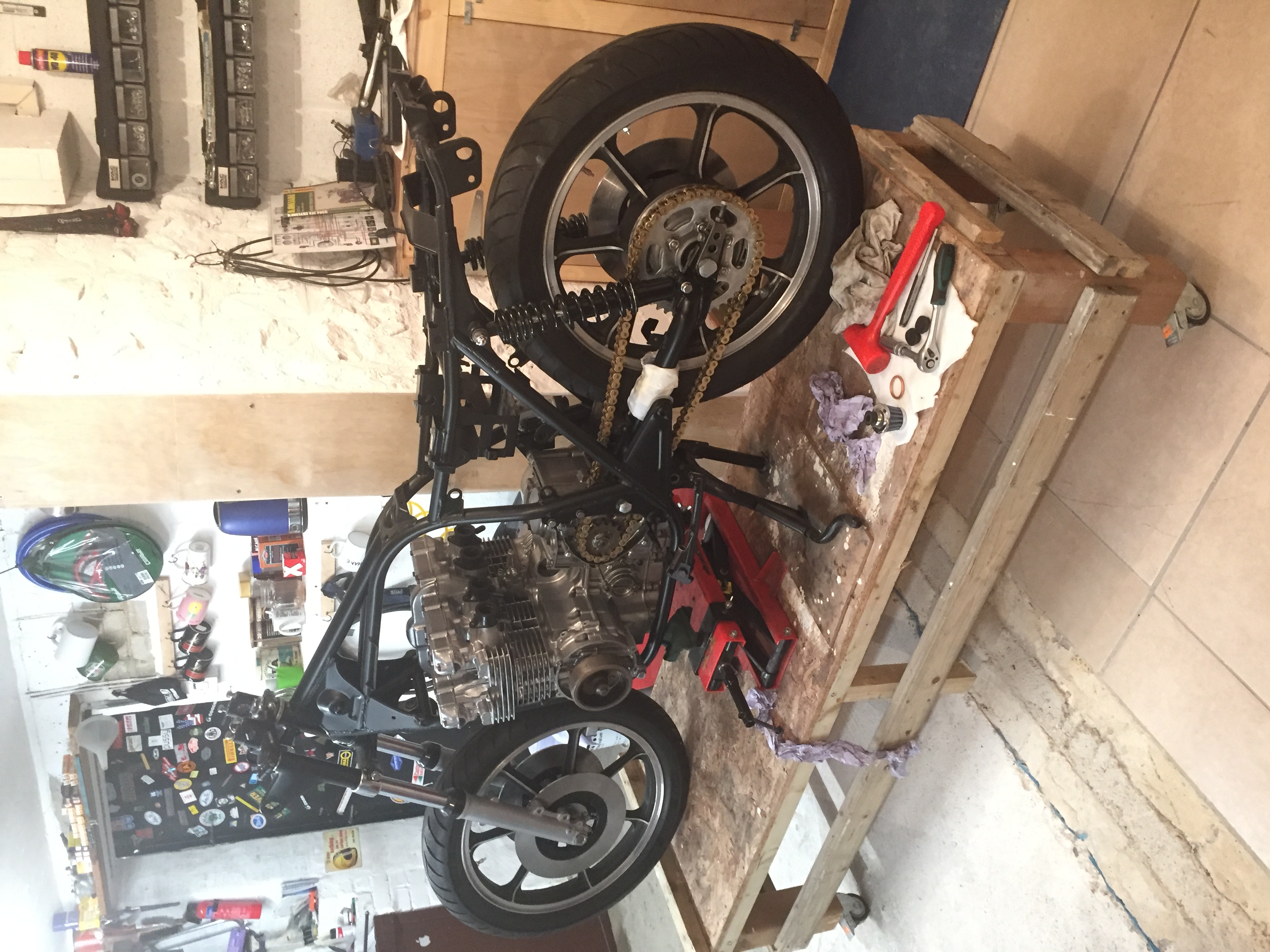 to put together new stanchions seals etc , still cleaning engine checkin parts and ordering as req
