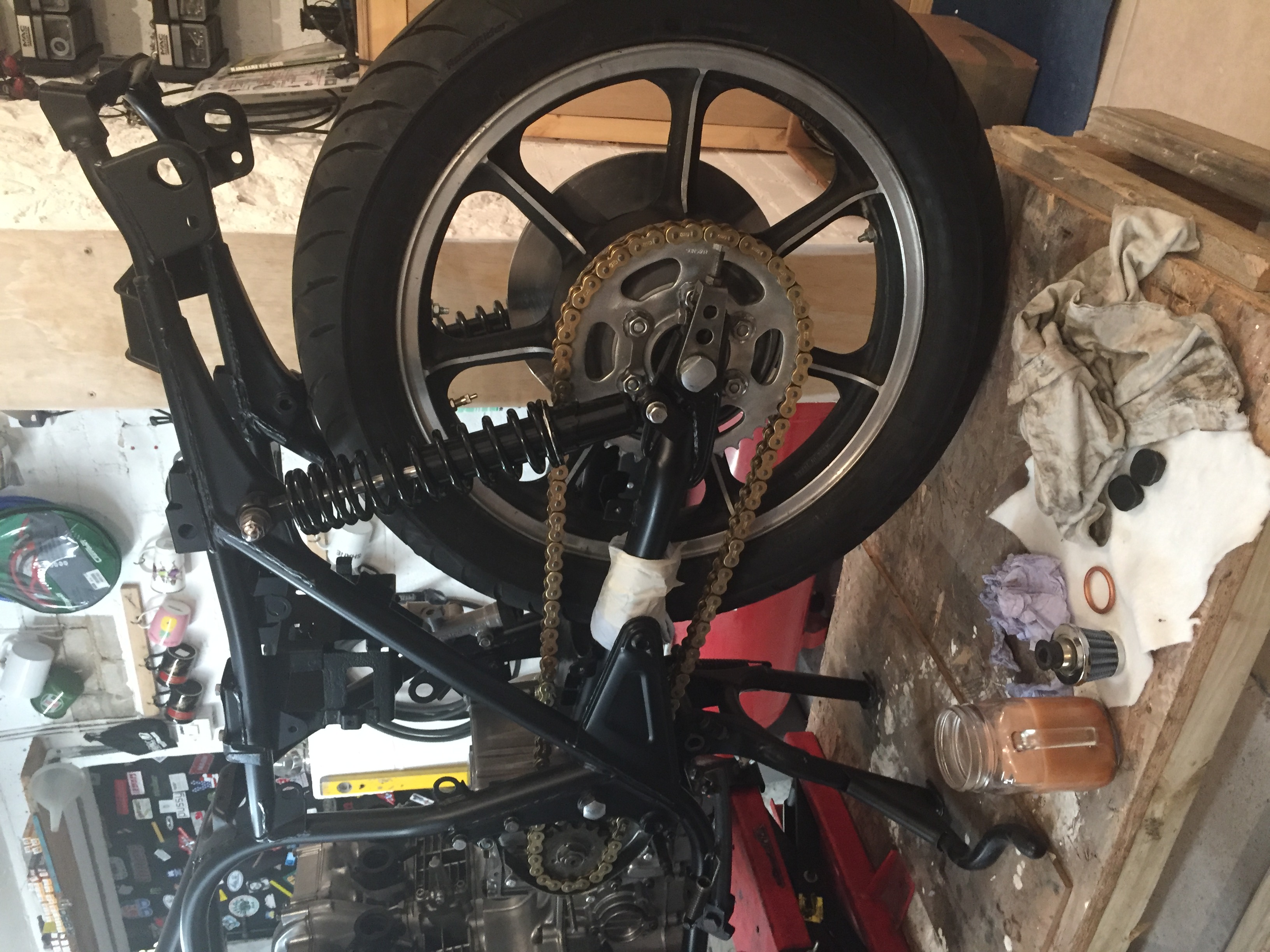 Heresy to some but looks brill to me ,ive got her on bench now swing arm in place all bolts i put in for