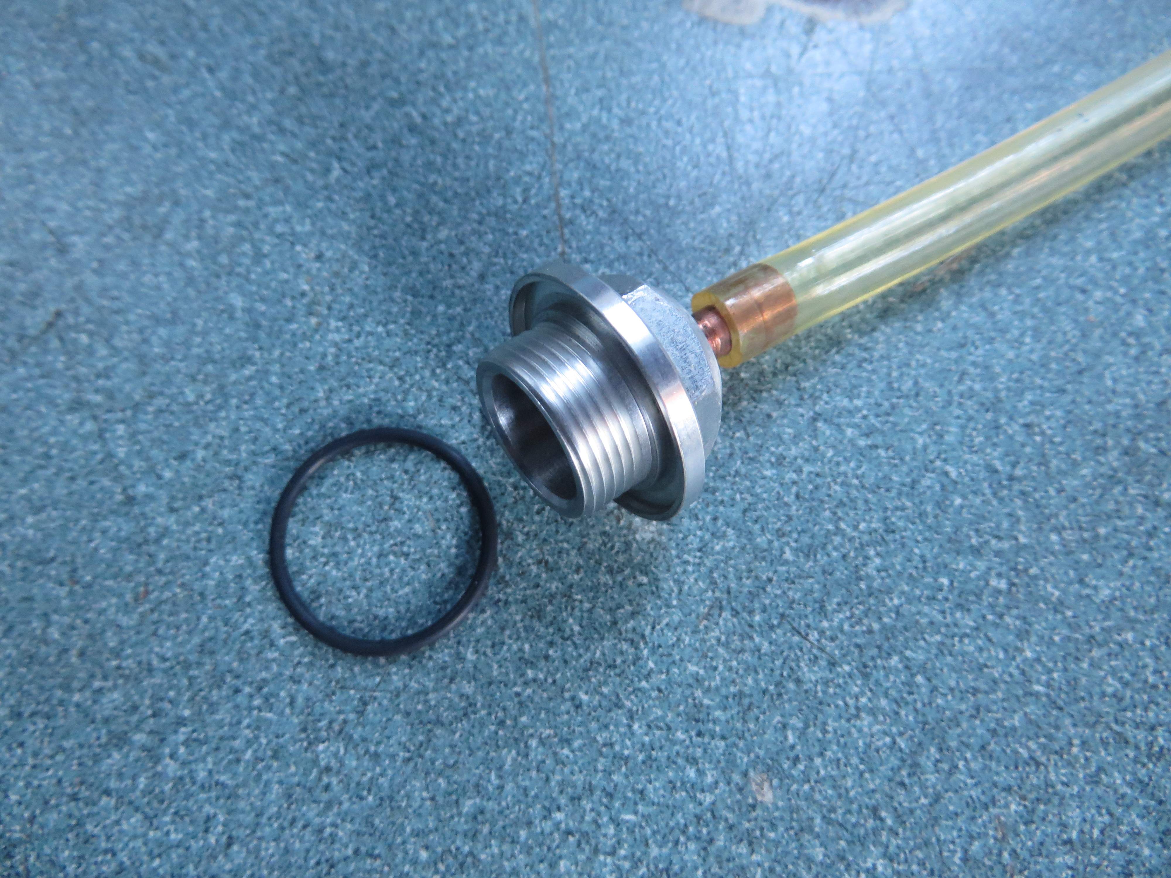 As above from Julian but got pizzed off with that so bought another alloy bottom bung, the one with the 17mm hex on it. Drilled a hole in it and rivetted / glued a short bit of brass tube into it. Attach a bit of clear tube and use it whilst its running to set the fuel height dynamically which is far more representative of real world scenarios. Cant say what height my floats are because i dont need to measure them, just to know when set that the fuel level is 3 - 4 mm below the gasket face. Its also better at getting them all the same. Bung was about £15.
