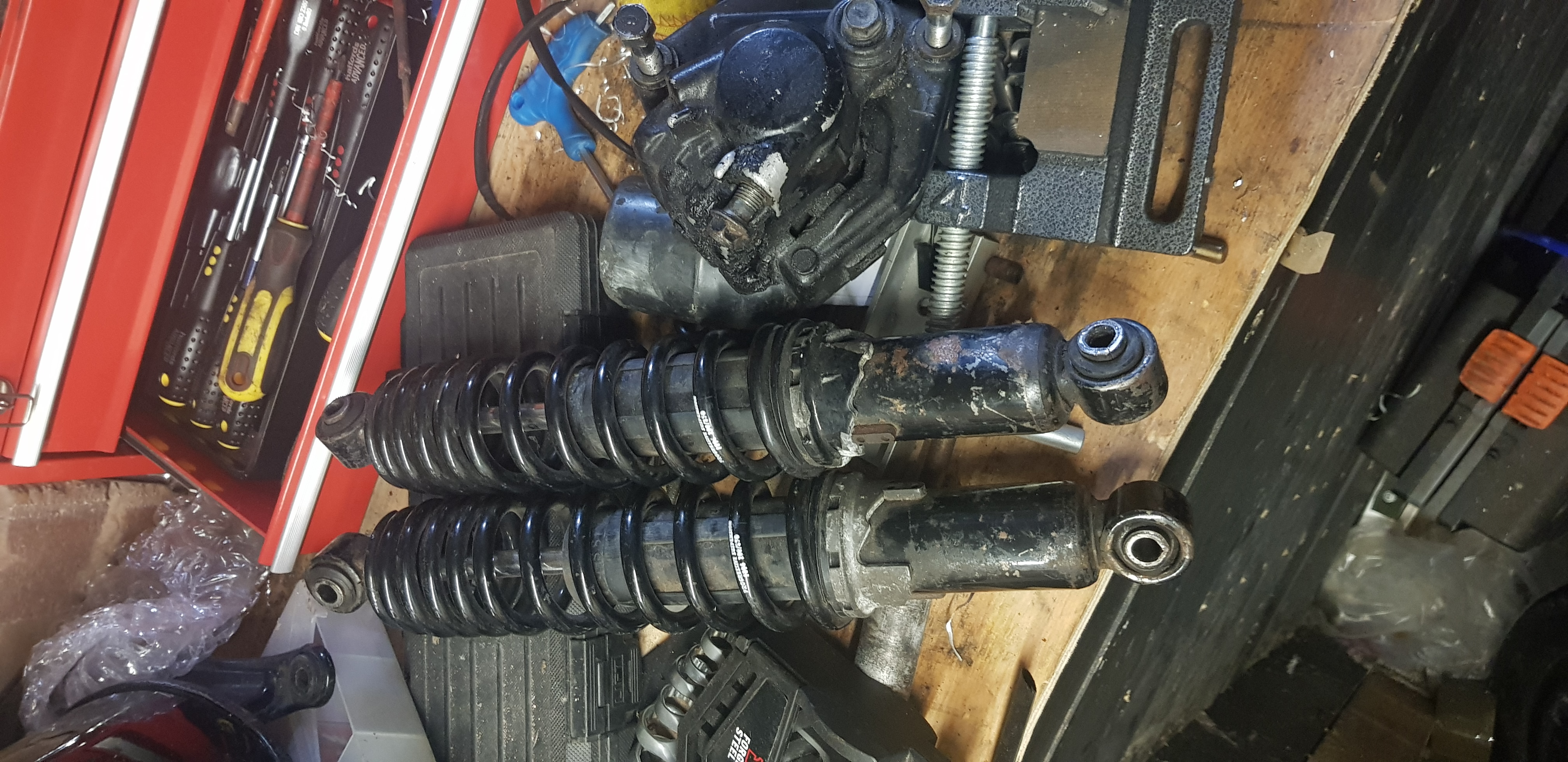Pair of temporary tyres on to get ride hide set up and dry build so all brackets and mounts are on before the Z1R frame gets blasted and painted