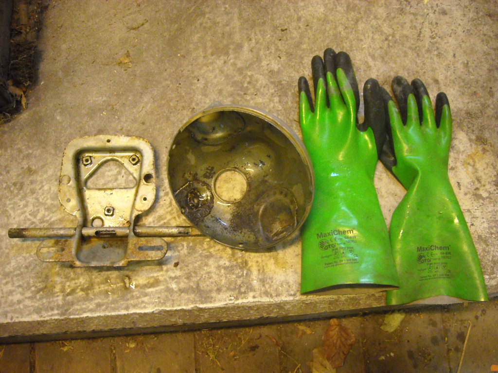 Wear protective goggles and do it outside, the vapours are harmfull. I place the parts in the old toilet...nobody uses it anymore so...