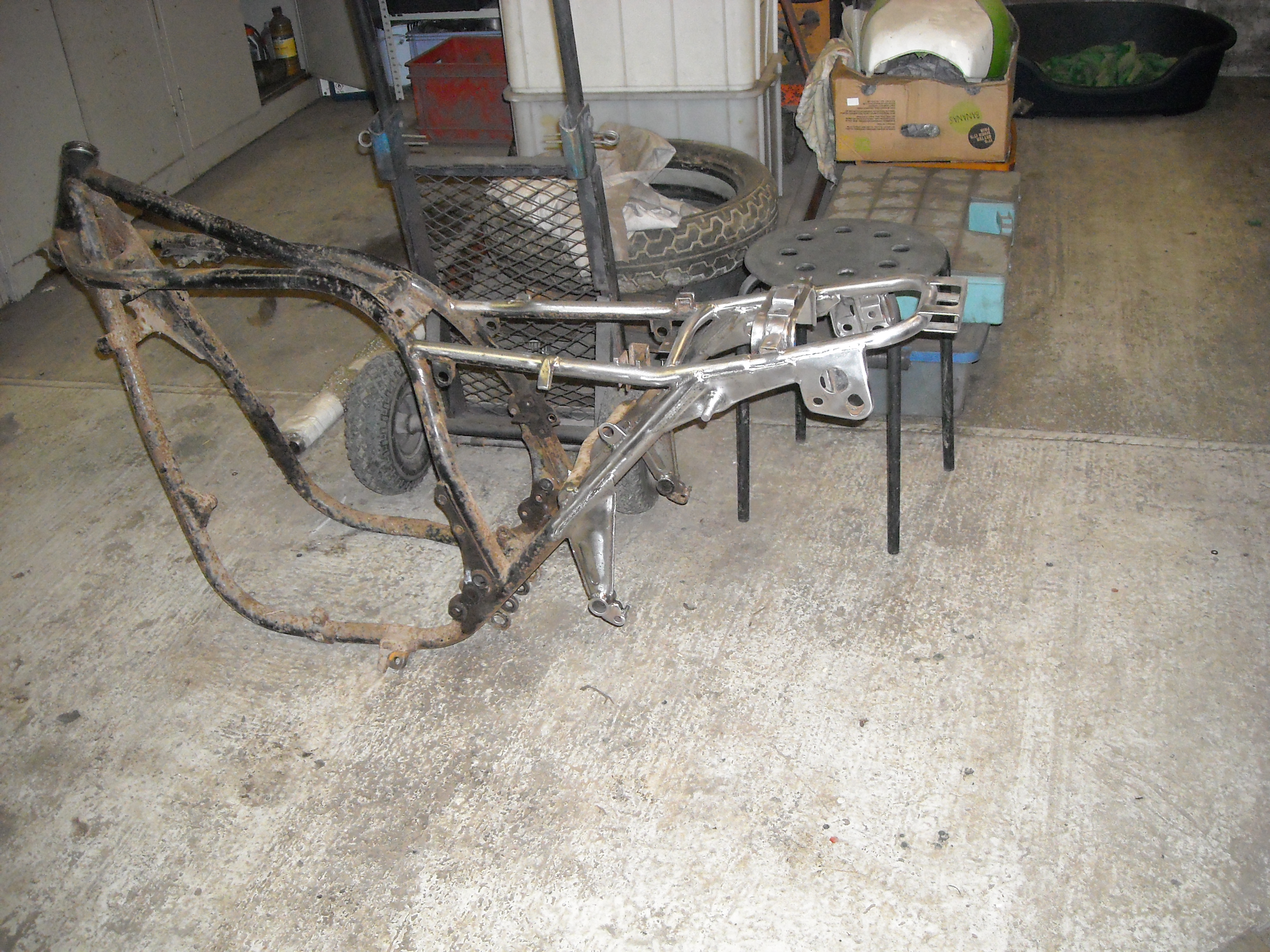 Wow mate you took a on a job there, warm up the media blaster and make sure you have plenty of tea and aluminum oxide. Iv all ready got a start on my version of this bike but yours is way further gone than mine.