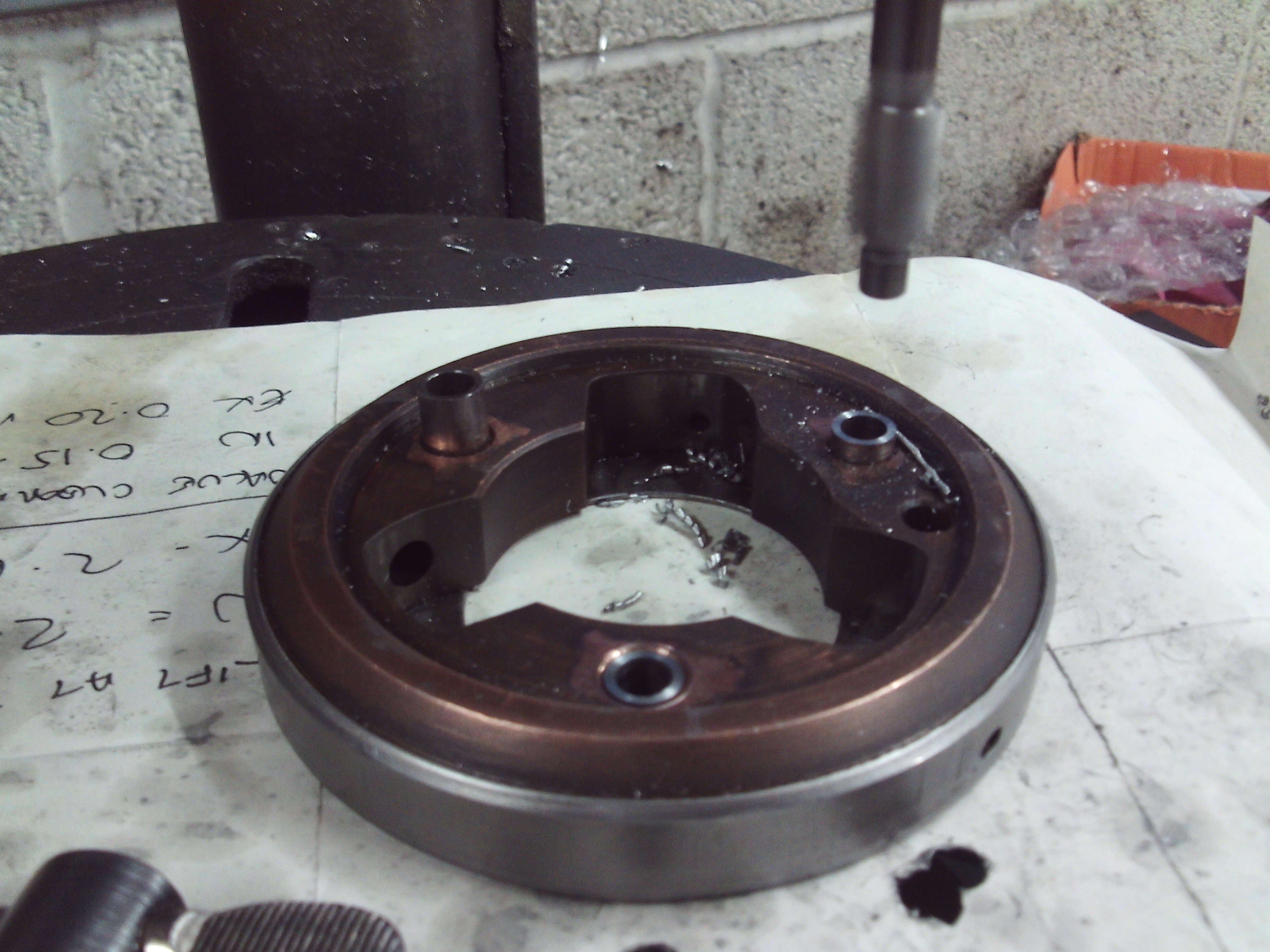 There's still a few of the original extractor threads left in the hub but they are too shallow for the bolt to get a decent engagement so these will be machined out to allow the puller bolt to pass through and the Electrex rotor can now fit virtually unmodified with just a locating pin needed to complete the main work of the conversion .