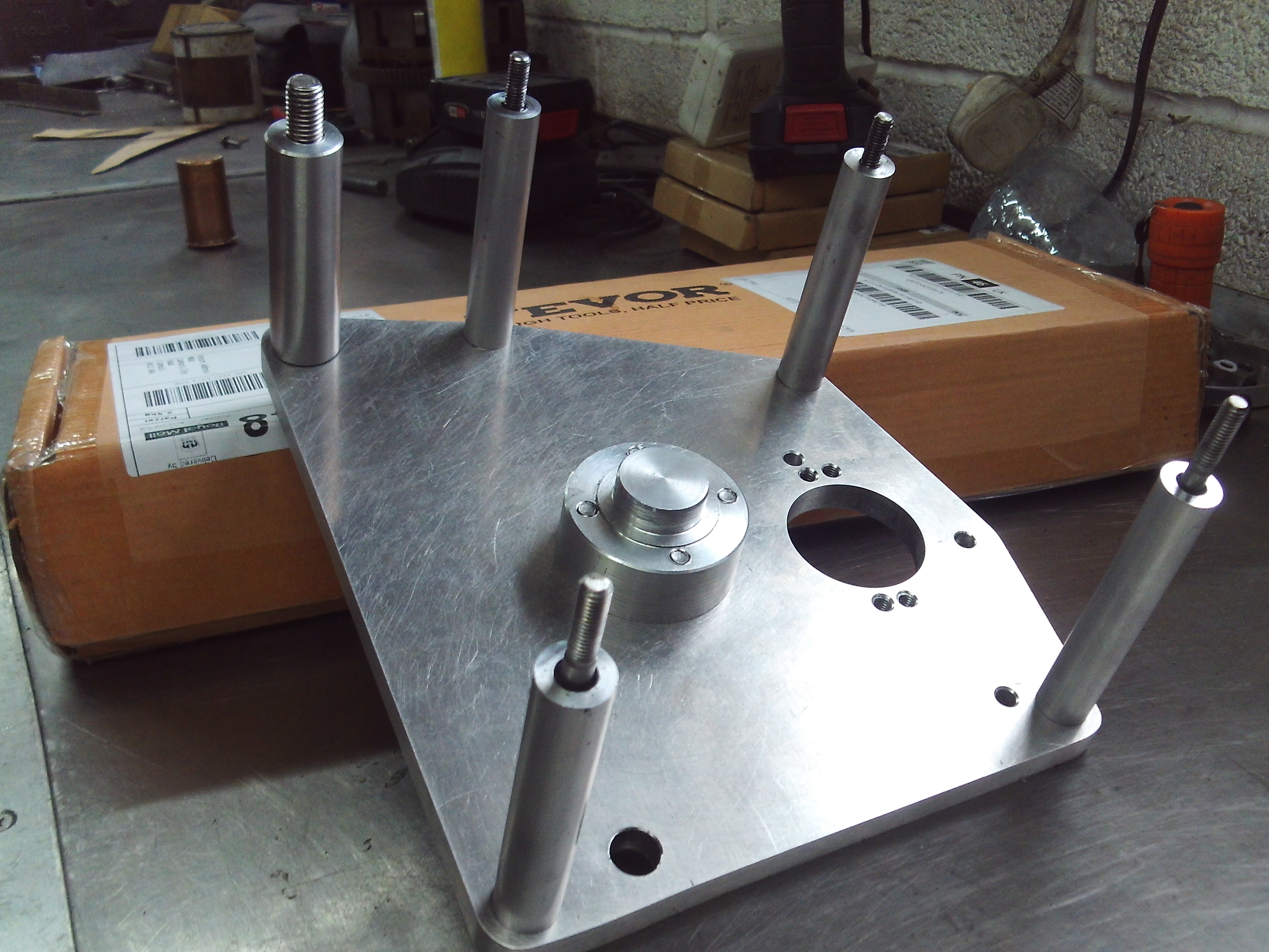 The outrigger plate now has it's mounting spacers and bearing support stub.