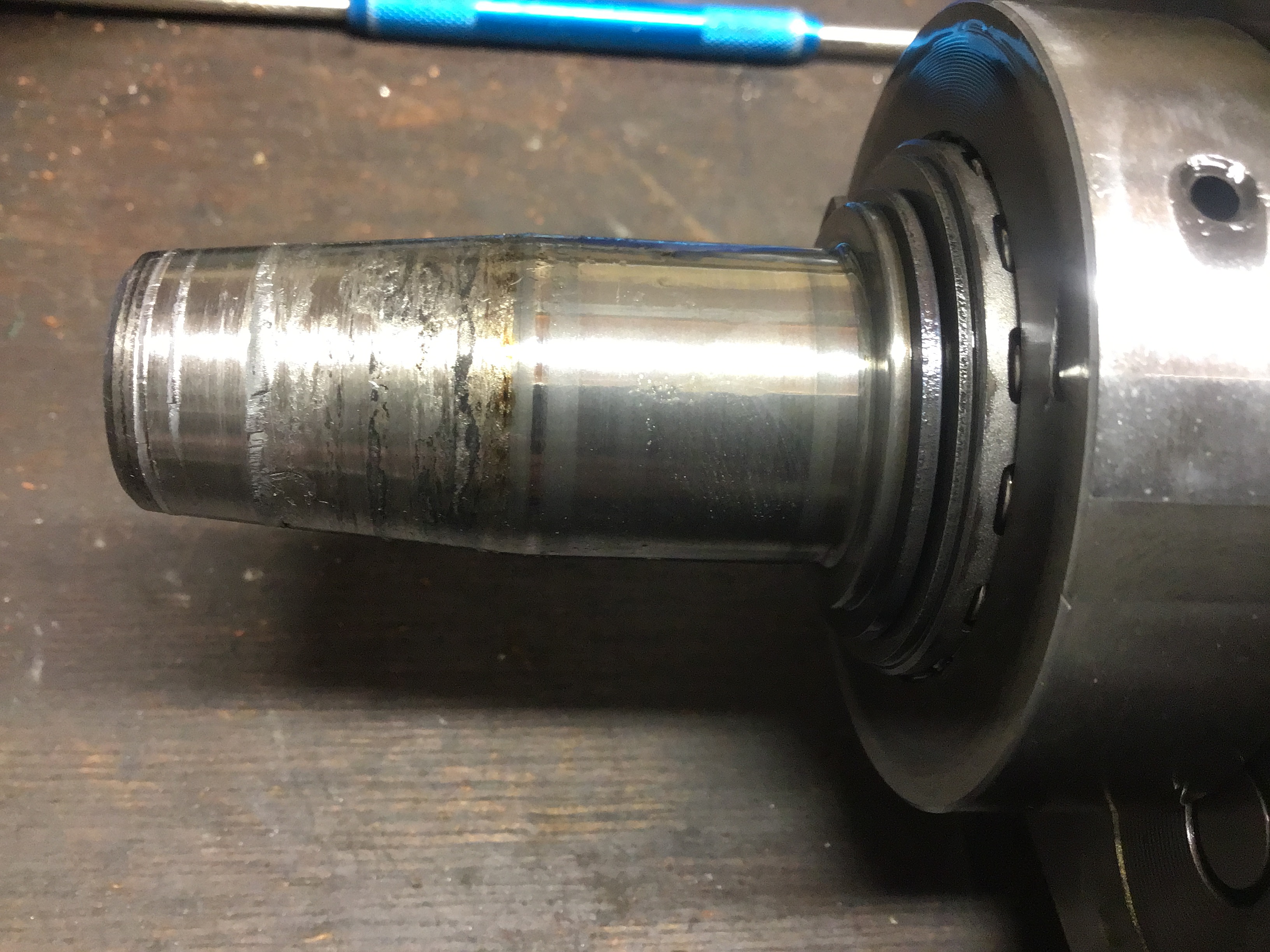 That crank taper looks pretty good really. I wouldnt be surpried if it cleaned up by lapping on another std rotor without any machining.