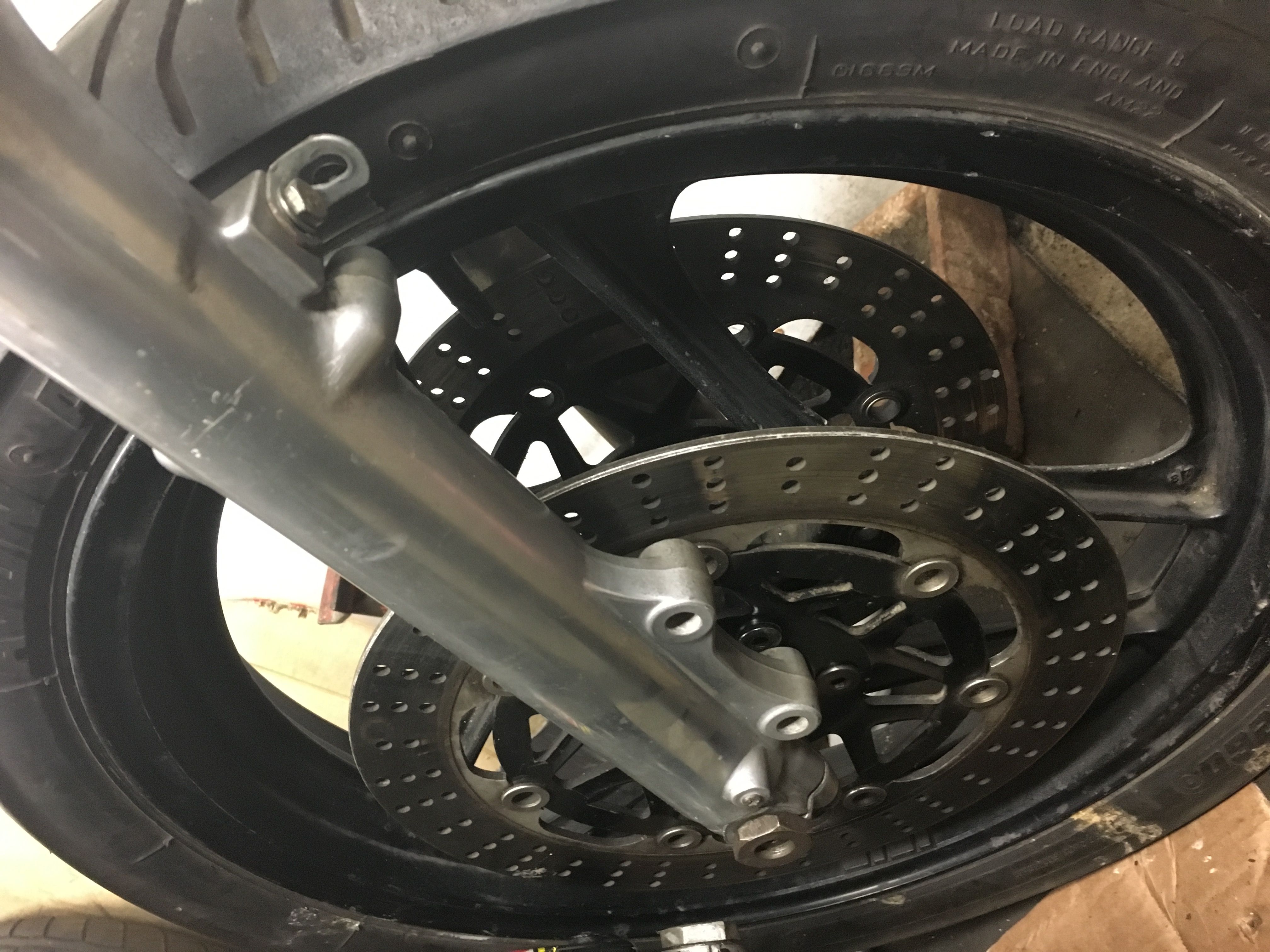 Brembo single pot calipers will be fitted once I have scrounged them off a friend.
