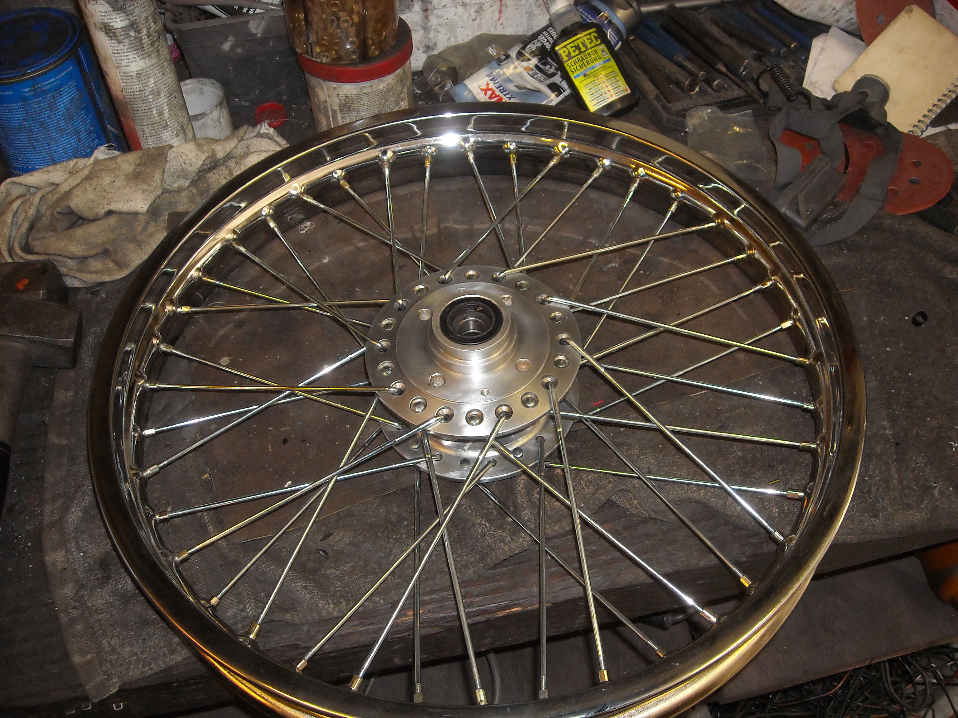 To finish the day I started lacing up the front wheel...it took me a few test runs before I got the spokes at the correct place so that the spokes run straight from the hub to the rim.