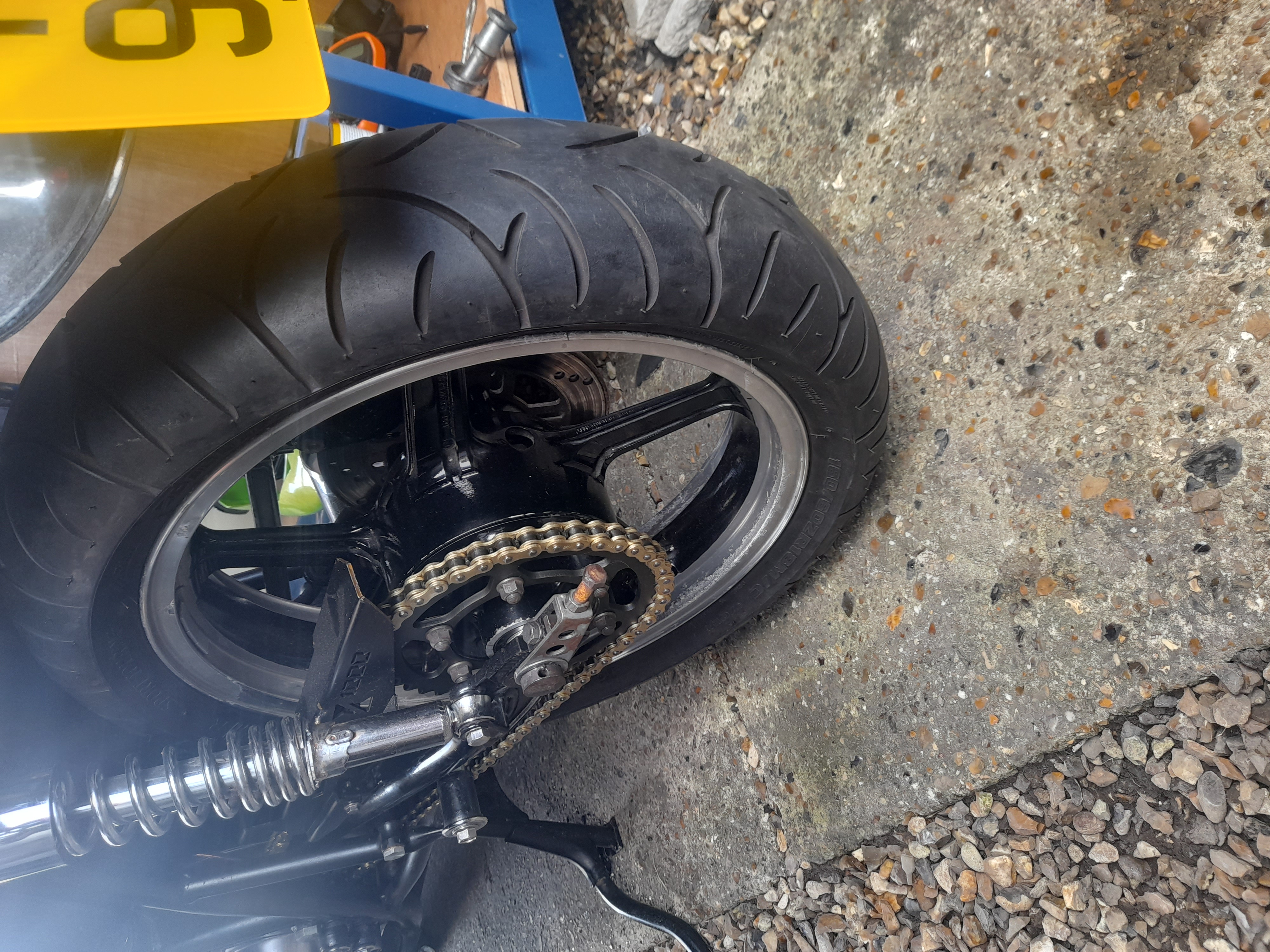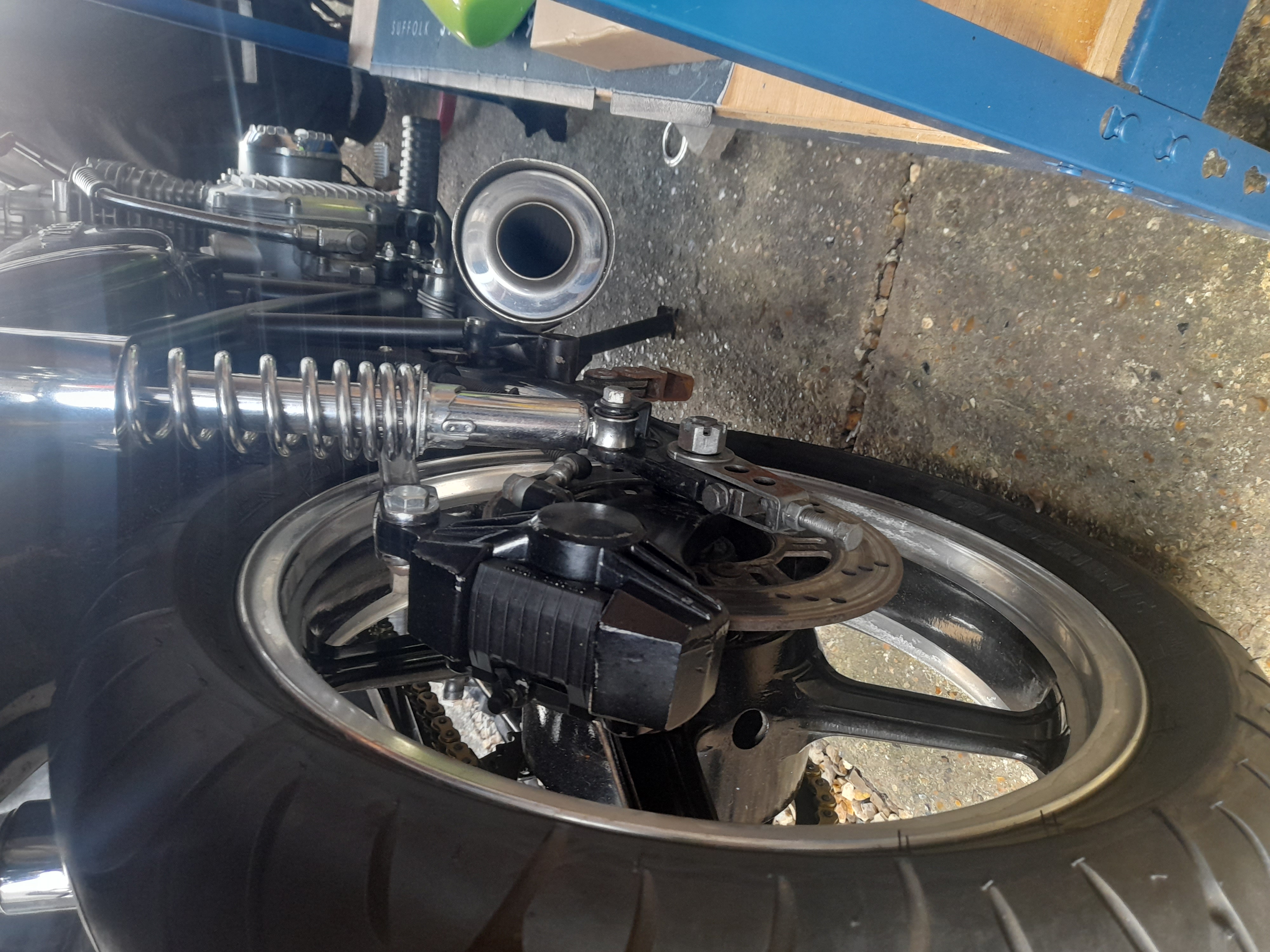so far.so good...550zephyr wheel on and looks awesome...took out bike to check,just up road....hmmm..slightly weird..discovered rear 550 spindle needs a spacer,caliper side,had to shave down right side spacer as wheel as it needs to be 13mm length,so now have to sort another spacer to be fitted betw...