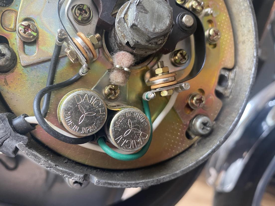 Here are the points wires down in the casing, green and white visible and so is black. Am assuming that the green feeds the white wire so does the points white connect to coil orange / white wire or coil black / yellow wire which I thought was earth?