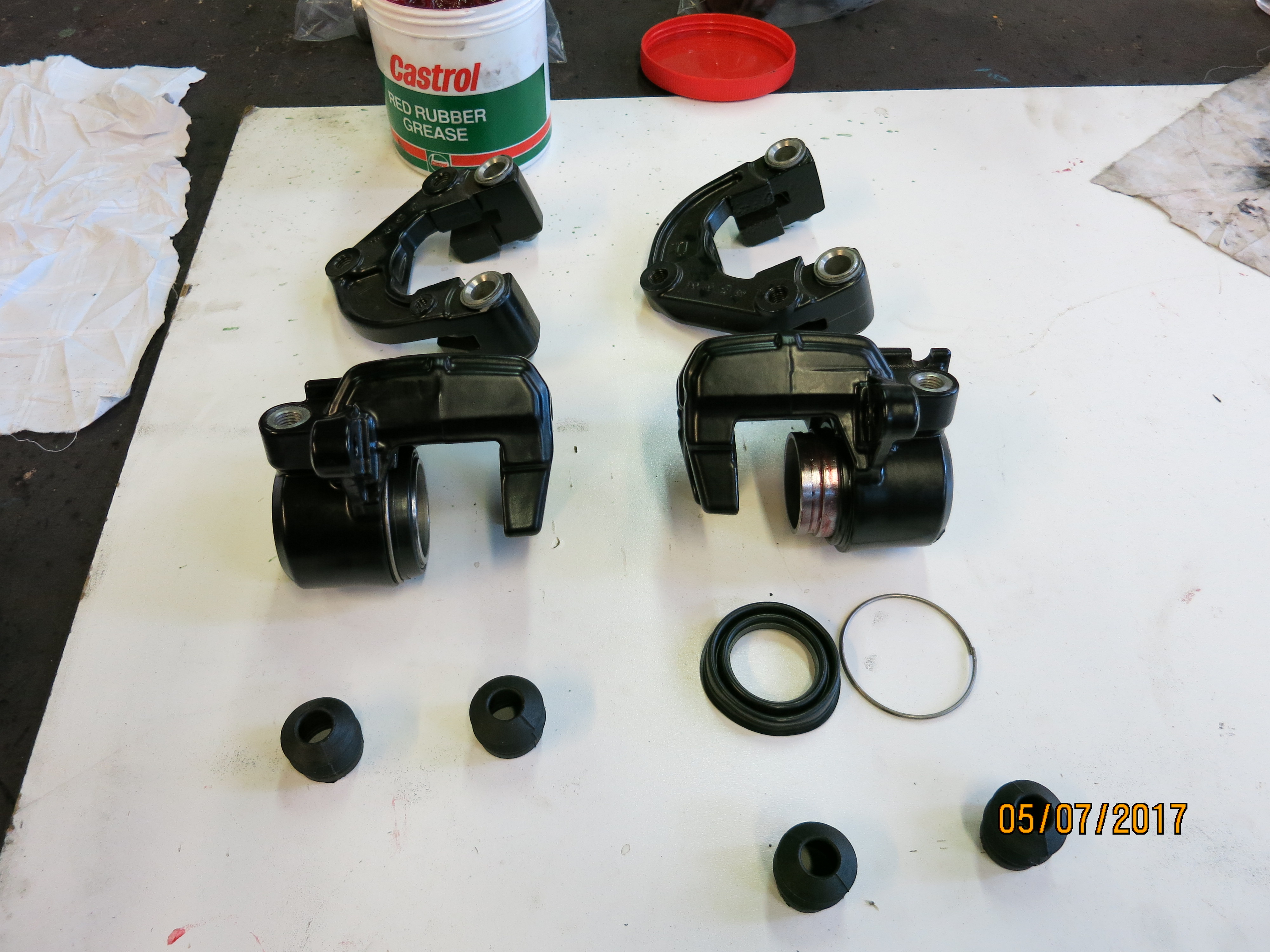 Got front and rear bake master cylinder seal kits, new pads all round and new caliper seal kits, also put new pistons in while they were stripped down. These are some of the few things that are readily available, I think these were from Tourmax.