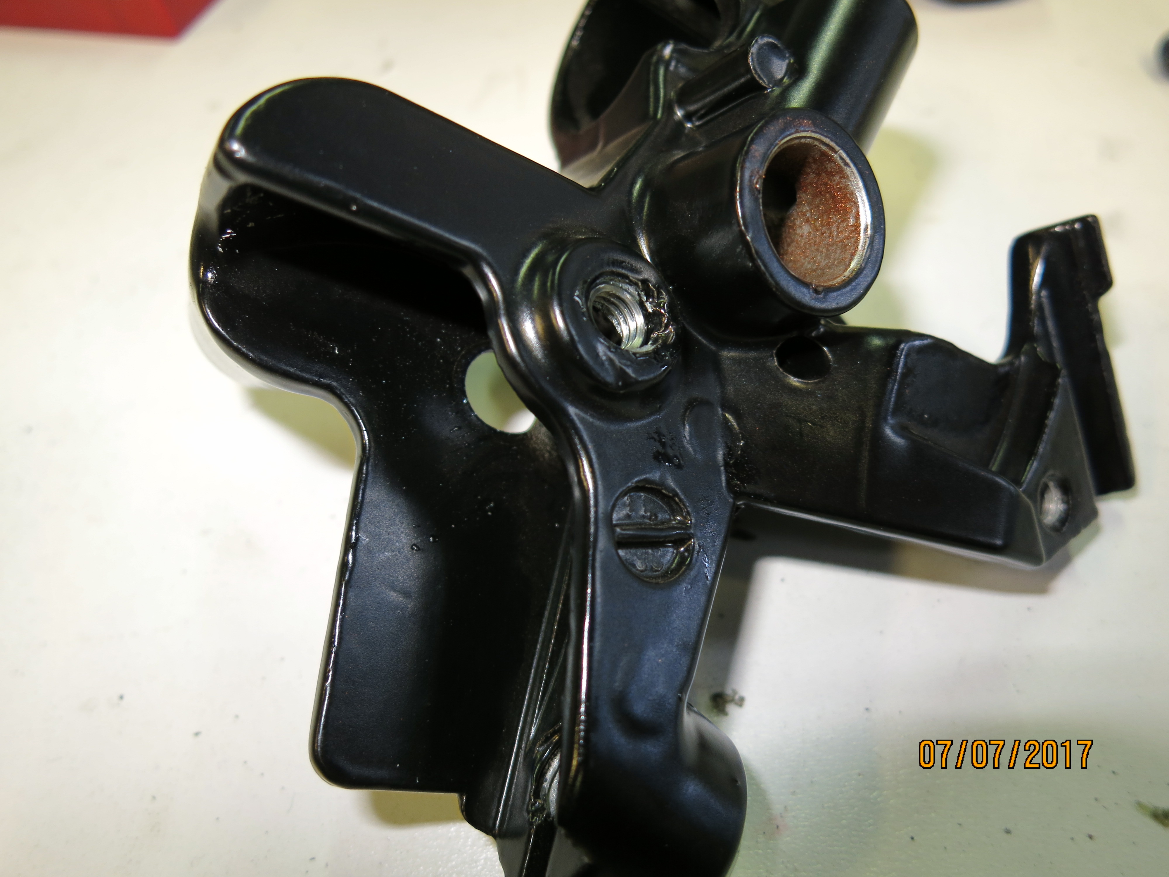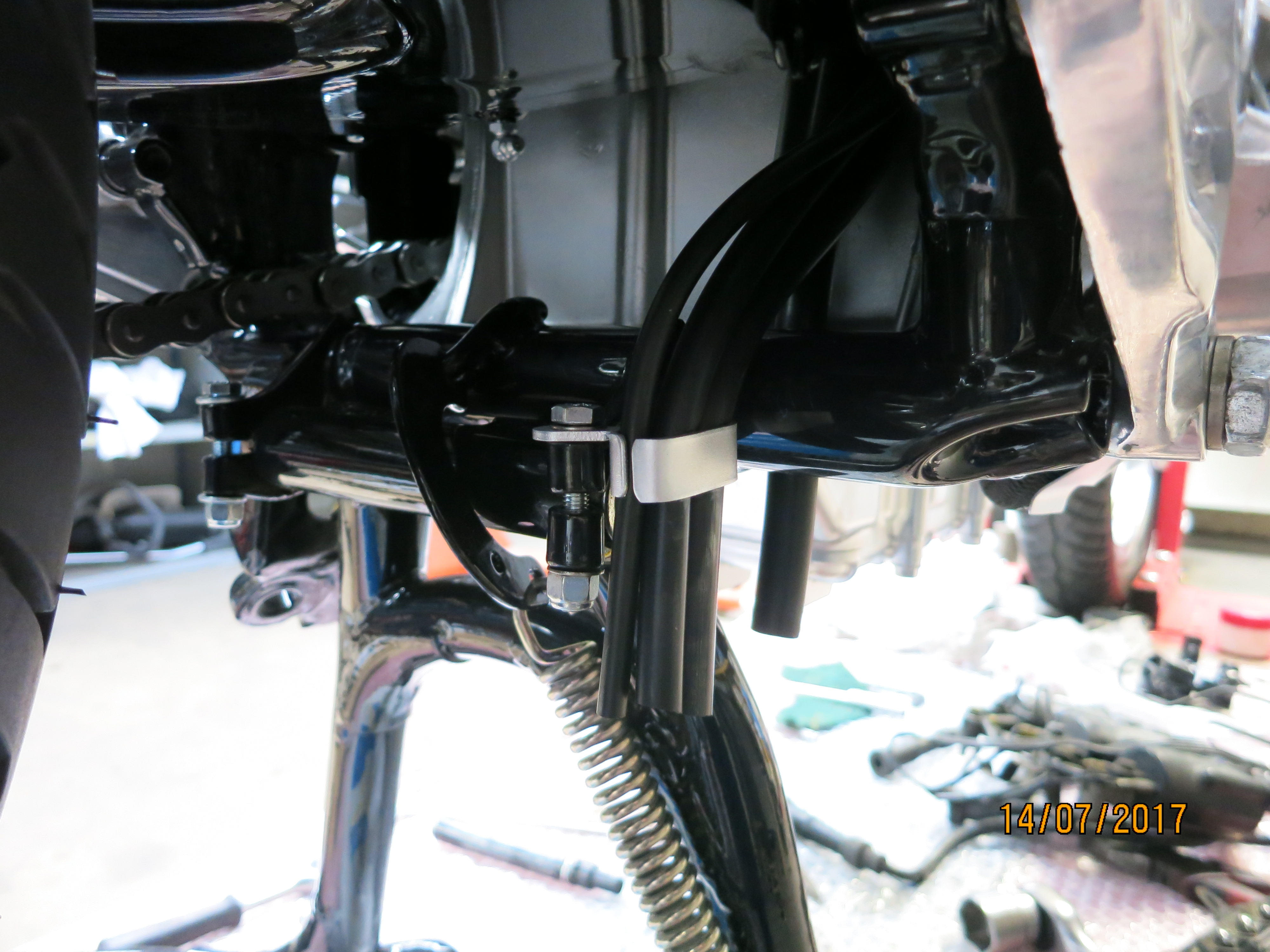 The silver overflow hose tidy off the stand bolt is always missing for some reason, even on a quite un-messed with bike like this. I never found one in 3 years, I did find a couple of 3D drawings and fabricated this one which does the job. I'm sure I could make close copies if I could get a sample.