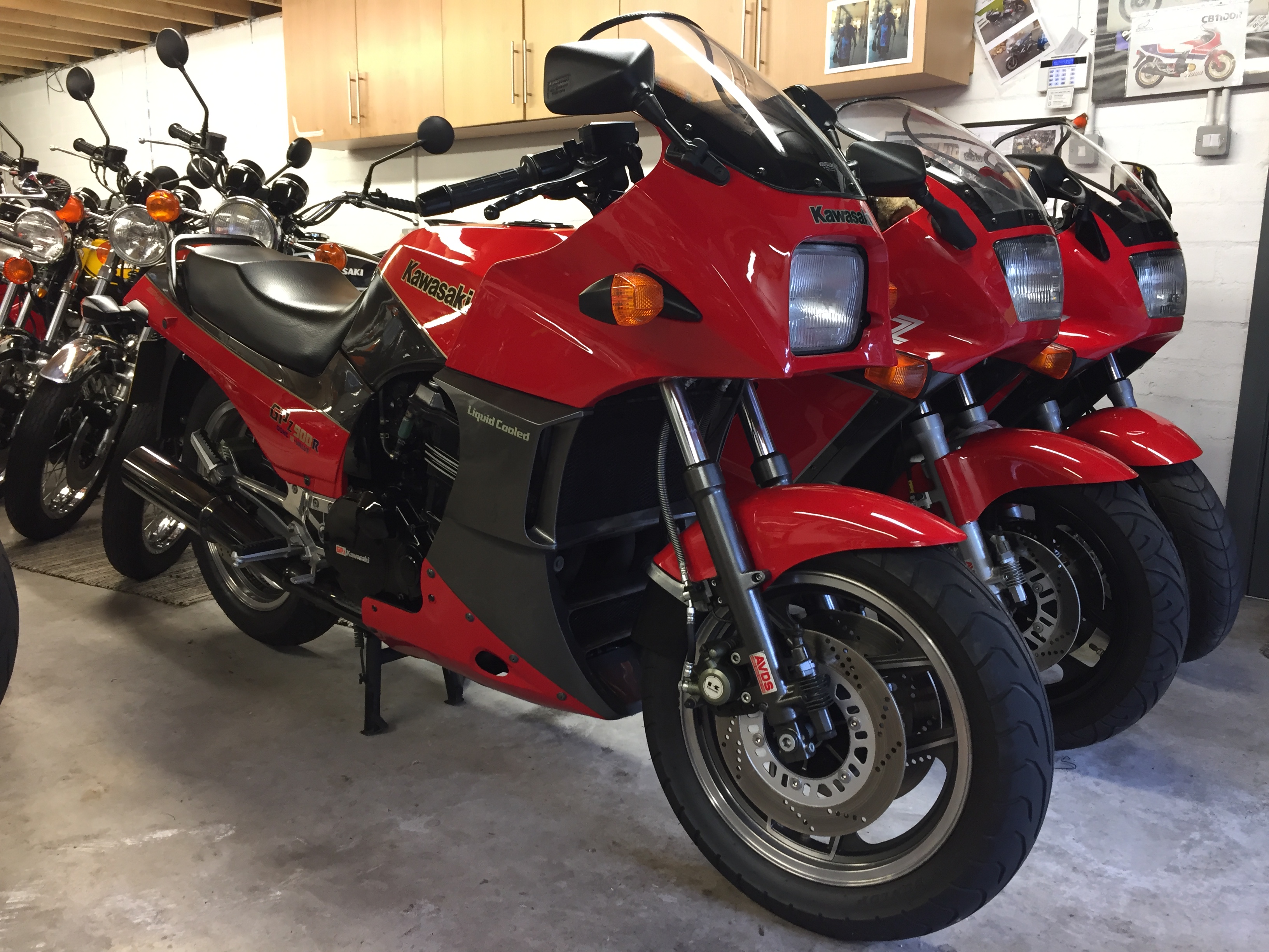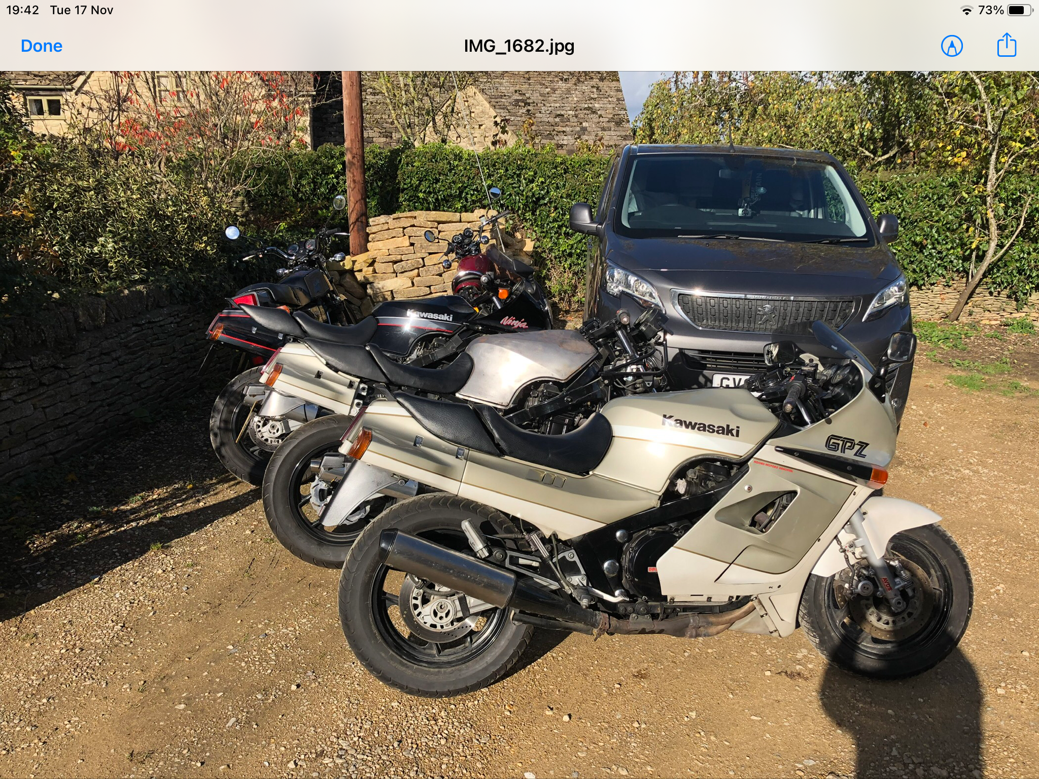 Never seen a gold white 1000RX and looks lovely,seen a GPX750 in that colour. I have owned 5 Gpz900Rs and 1000RX,ZX10B which I still have and a ZZR1100D6 also still have,you could say I like Kawasaki bikes. GPZ1000RX was a good but underestimated but have always changed air rear shocks on all and are brilliant much better suspension,ZX10B has a Penske rear shock but have used Hagons with good results. Have also owned a GPX600R in the red colour same as other member and are a93model without anti dive and sold for£3199. Have also owned H2 triples and still have a 69 H1 and also owned H2 2016 model which was brilliant. Owned a lot of Kawasaki's.Every model from Z1B,Z900A4 still have,Z1000A1,2xZ1R's,Z1000H,Gpz1100B1 and B2 still have one and lots more so can state am an addict.