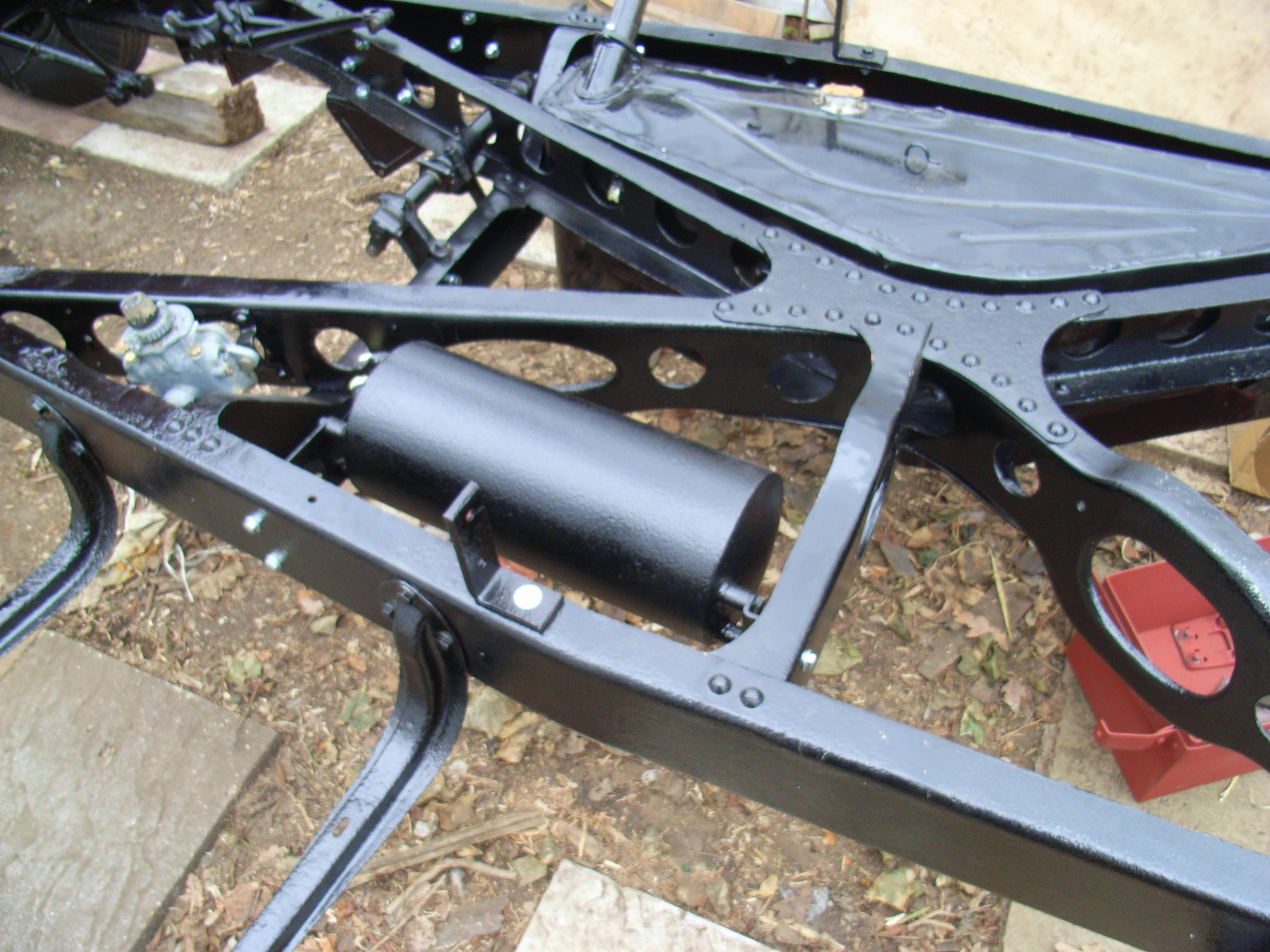 The cylinder in the middle that looks like a silencer is the hydraulic tank i think. Just in front of it is the manual pump.