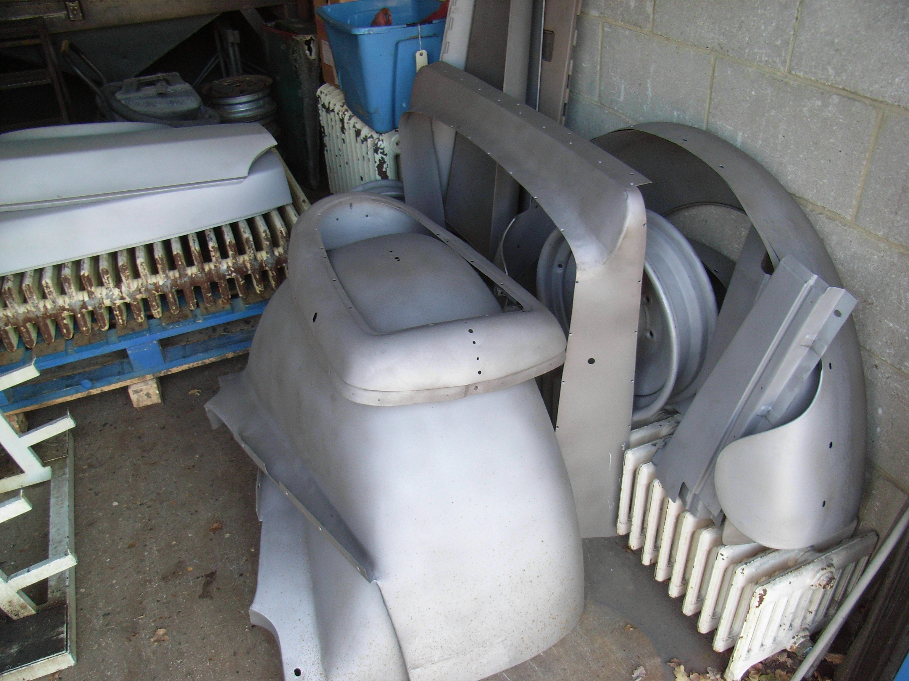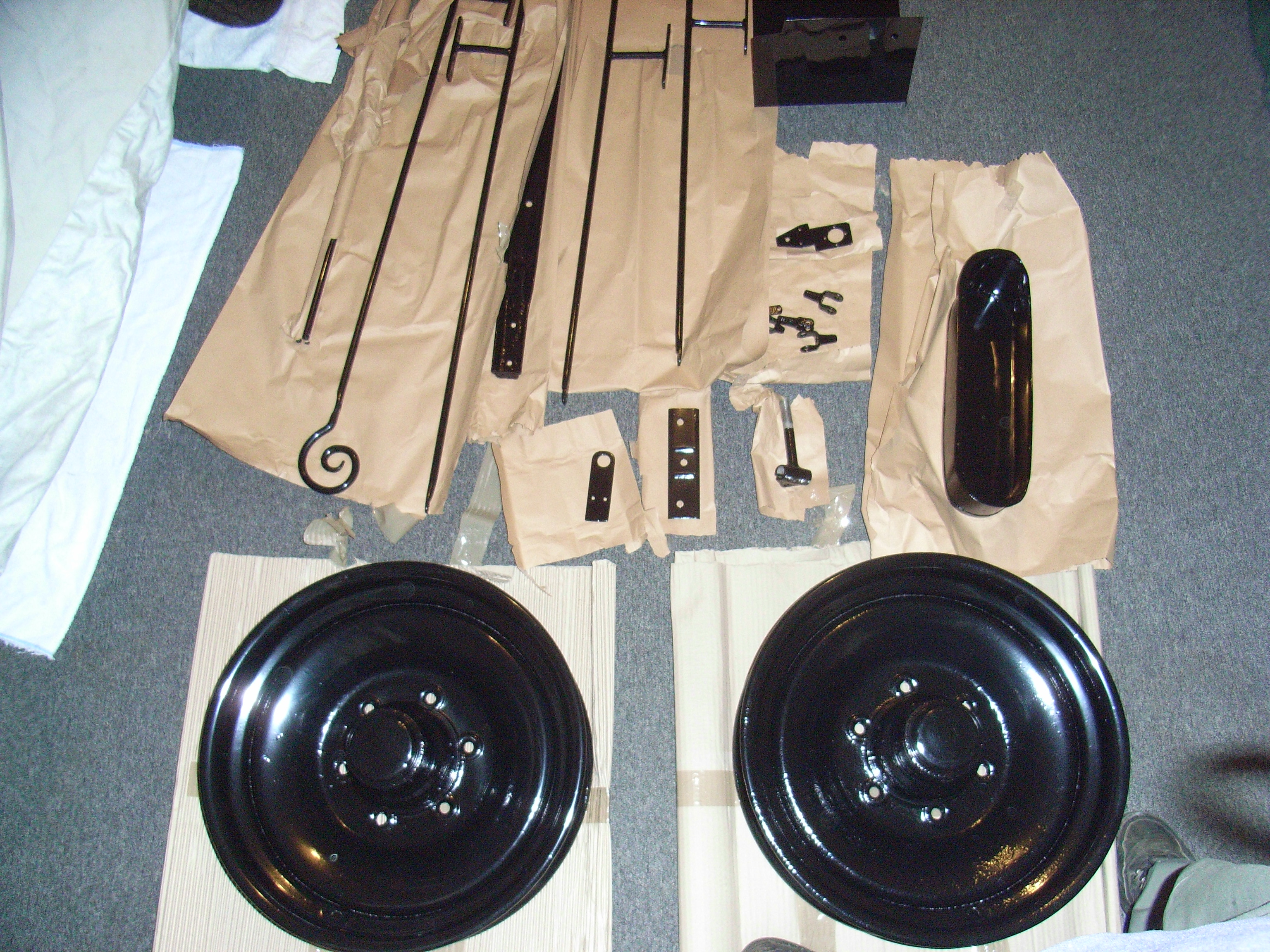 Now the reason here is that there is a plan developing to build a trailer for the car. The two wheels with no hubs would be fitted to the trailer and the spare wheel for the car (mounted permanently on the running board ) would serve as a spare for either as they are all the same size.