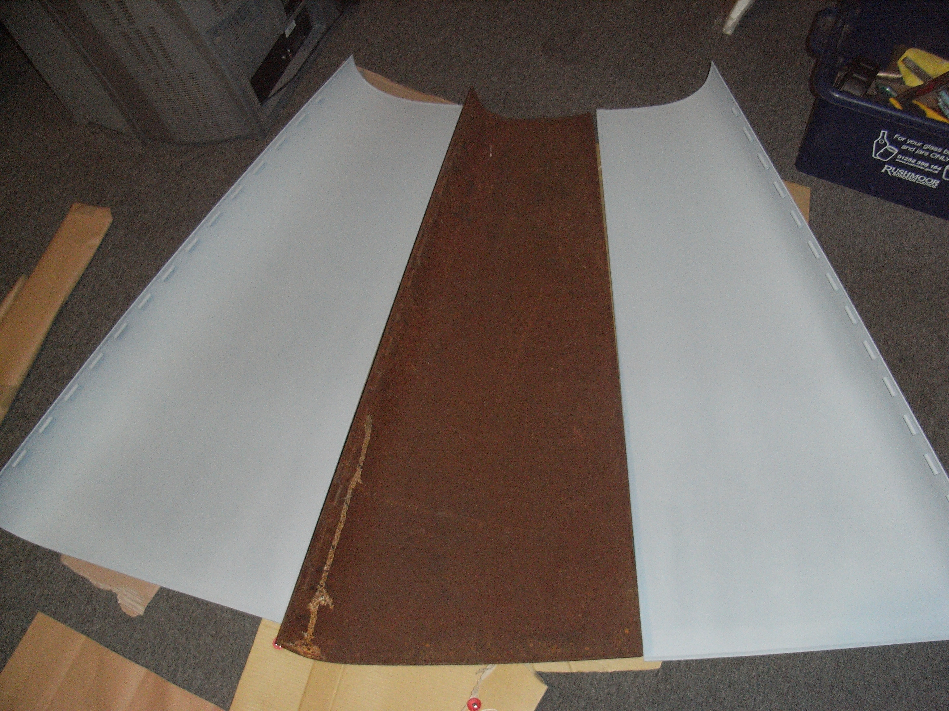 I mentioned previously that i had had to re-make one half of the bonnet top sections. The old one pictured in the middle has rotted beyond repair.