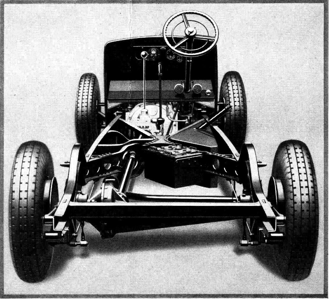 I'm a bit curious about the way they have drawn the rear leaf springs here. The justification for the off-set diff is supposed to be a flatter floor but as you can see the floor cant be flat and on this car the top of the chassis loops, over the rear axle, protrude through the floor and are covered with curved steel plates.