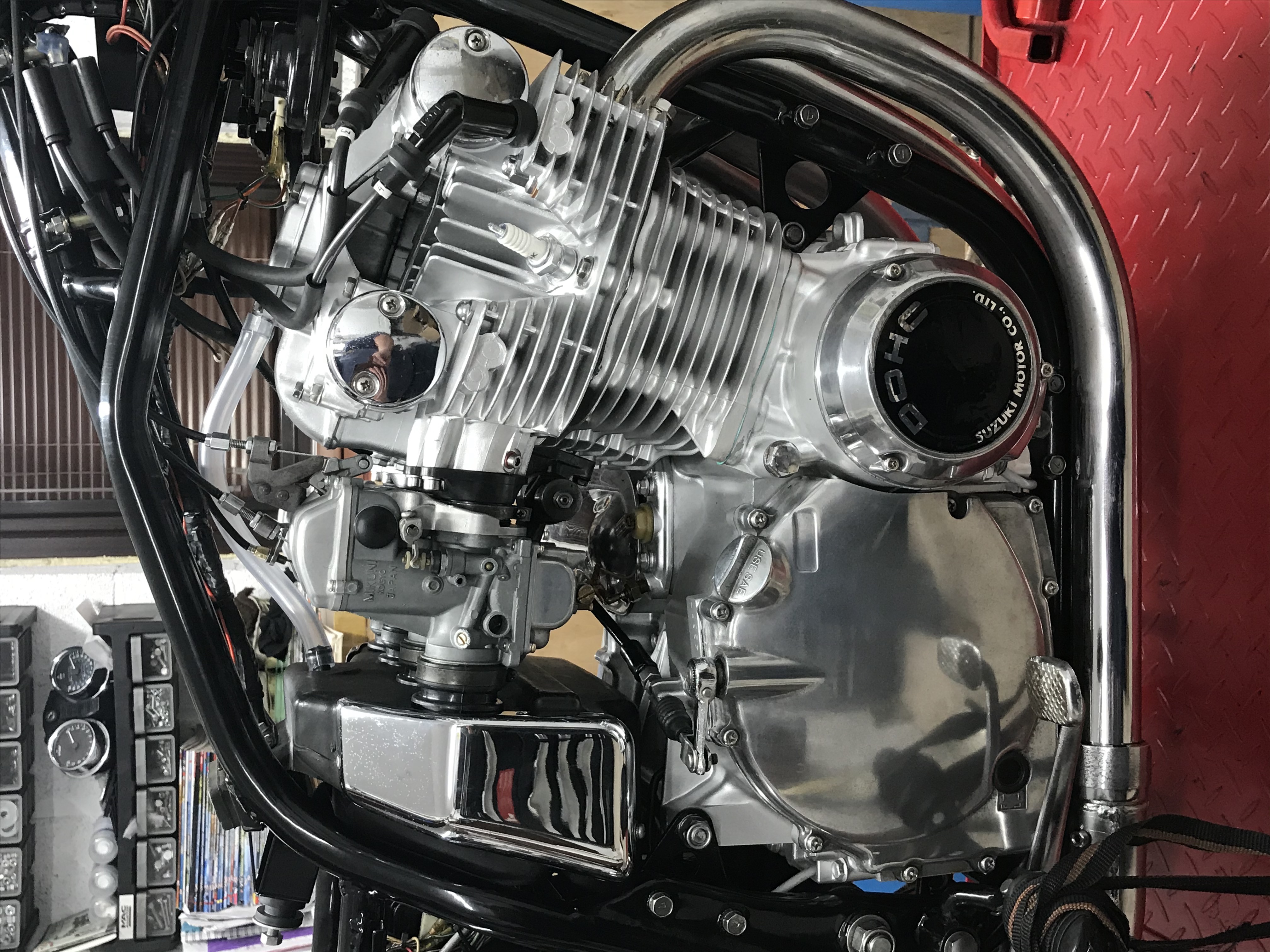 Patted myself on the back and moved onto GT550, fetched the wheels back with there new tyre's on and got that