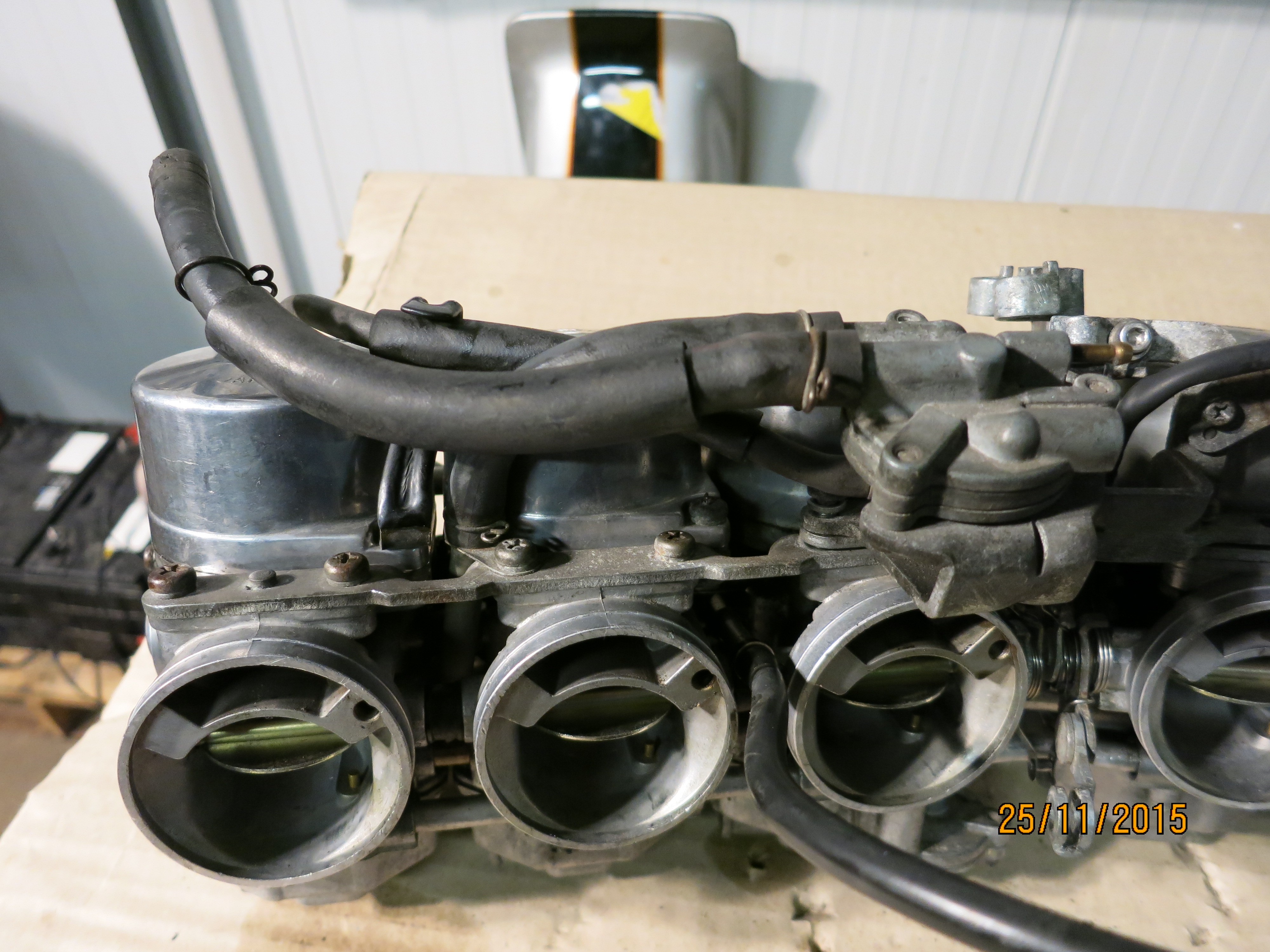 Bank of three, vacuum tap on the top with pipes connected . As with some other bikes there is a scenario when people either replace the part or leave it out and connect straight to the tank tap. If the diaphragm fails (or the valve is removed) fuel is permanently on to the float bowls, then if one of the float bowl valves fail and the bike is on the side stand number 1 cylinder can fill with fuel. Press the starter and the conrod goes through the crank cases. Regular thing, even now, with CBX owners.