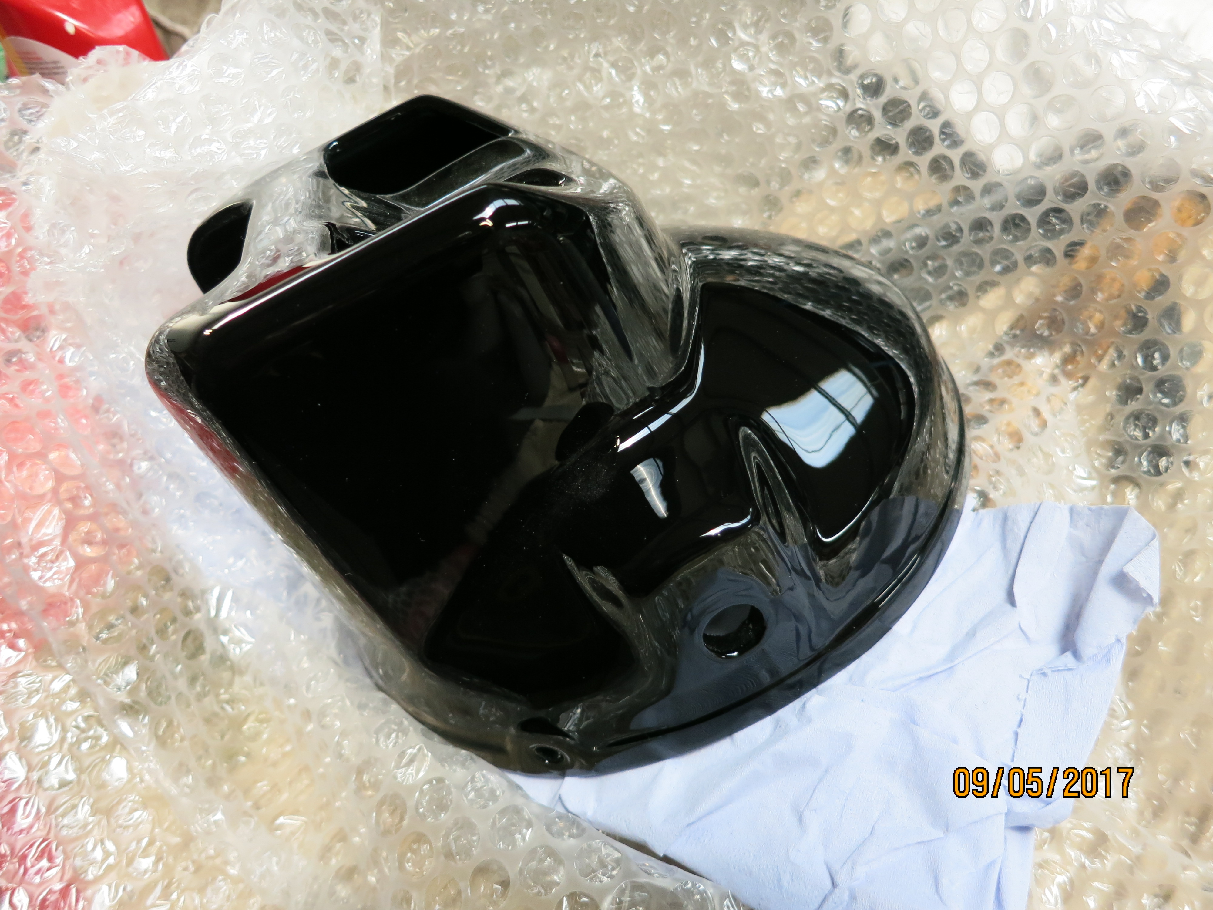 One of the side panels on the bike had a repair to a sprue so it took six months to find another good Hodna one (pattern one's are available but are not the same), the freshly sprayed side panels also made the other black stuff look a bit plop so I had to send them up to be done as well. Also had the headlight, back of the clocks and rear mudguard done.