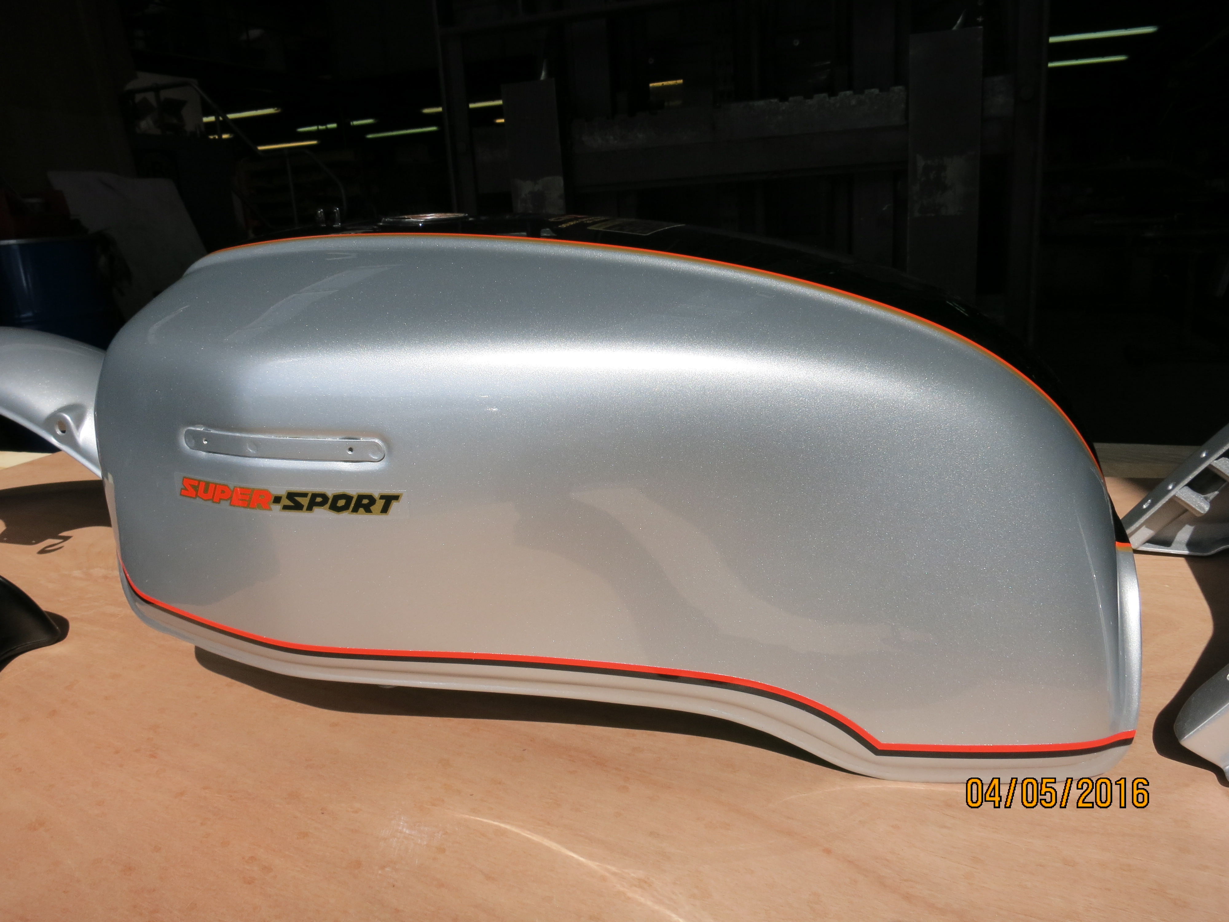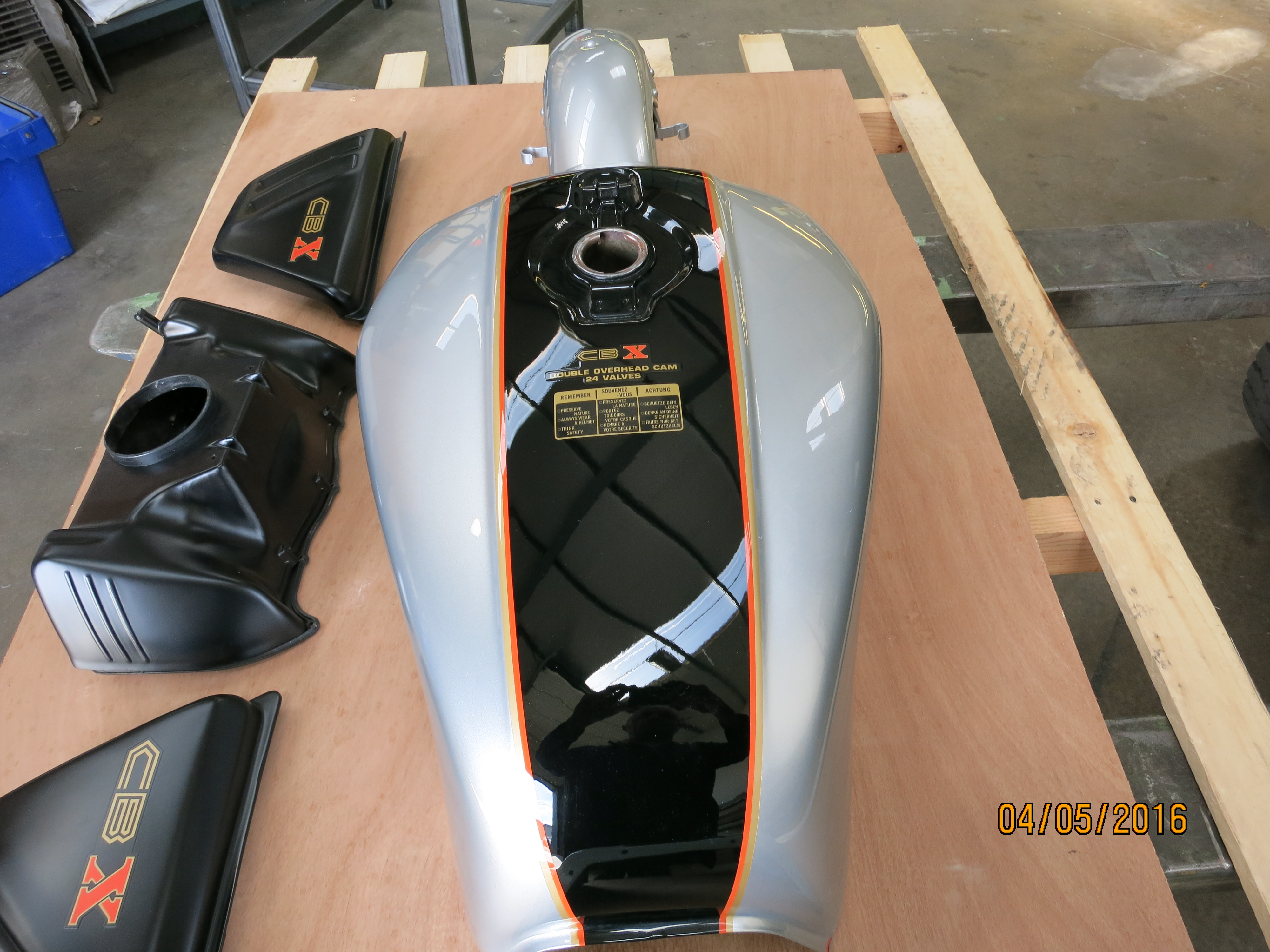 He stripped it, pressure tested and did the paint on the tank, plastics and panels.