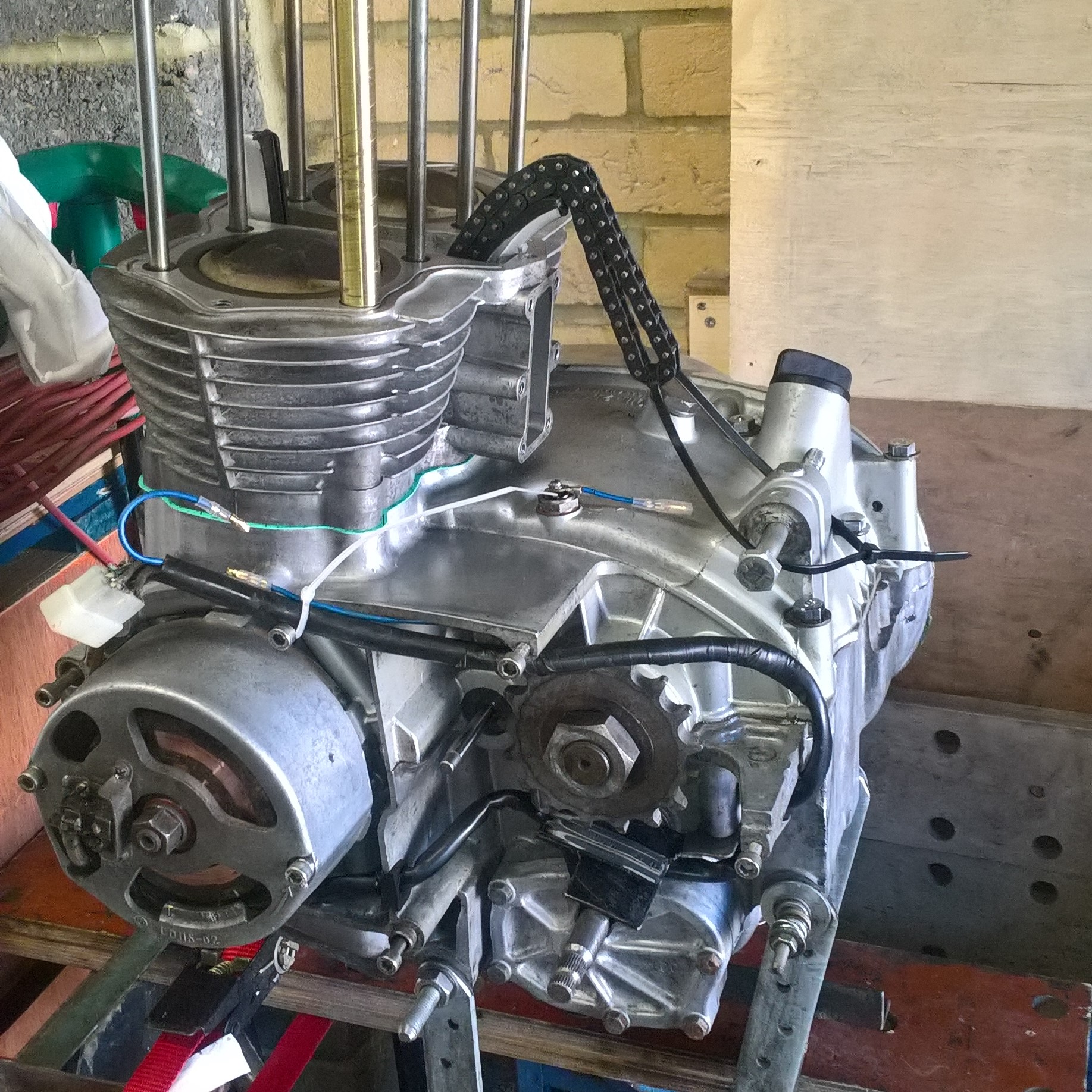 Got my head back form Buzzard Friday all very nice, he had to make arbors as they are 8mm guides, and could just get the cutter to open up enough for the huge valves, new stainless valves, engine is back together and in the frame.