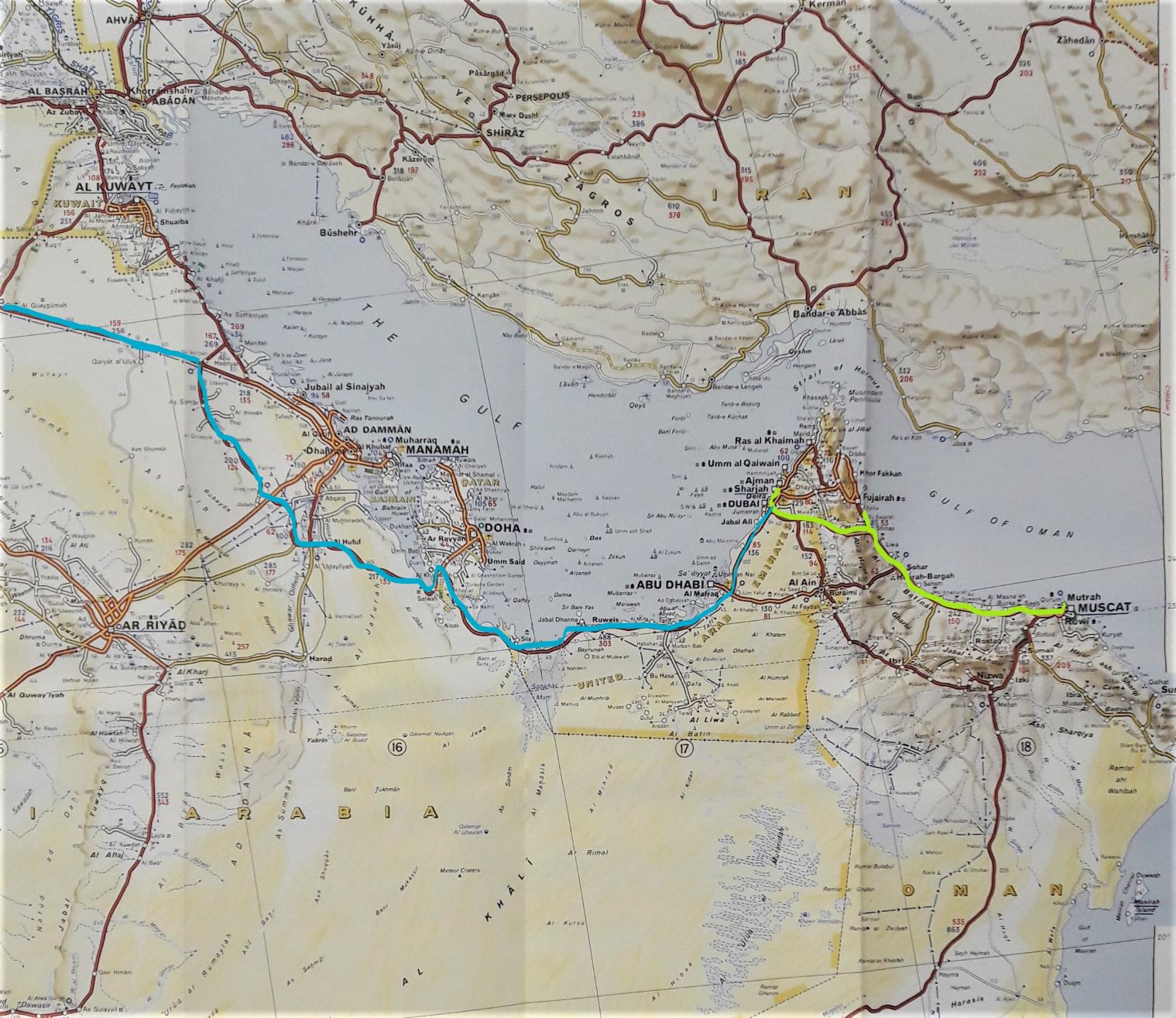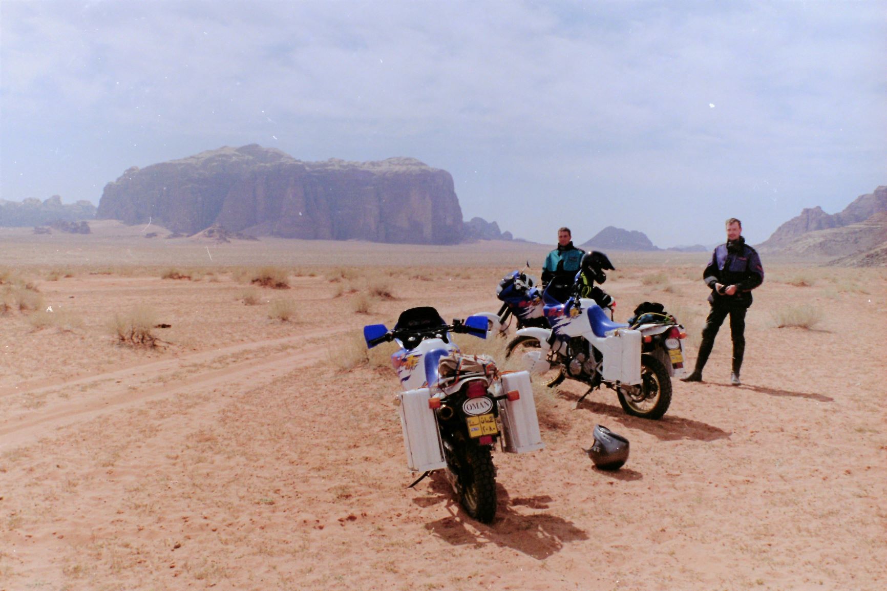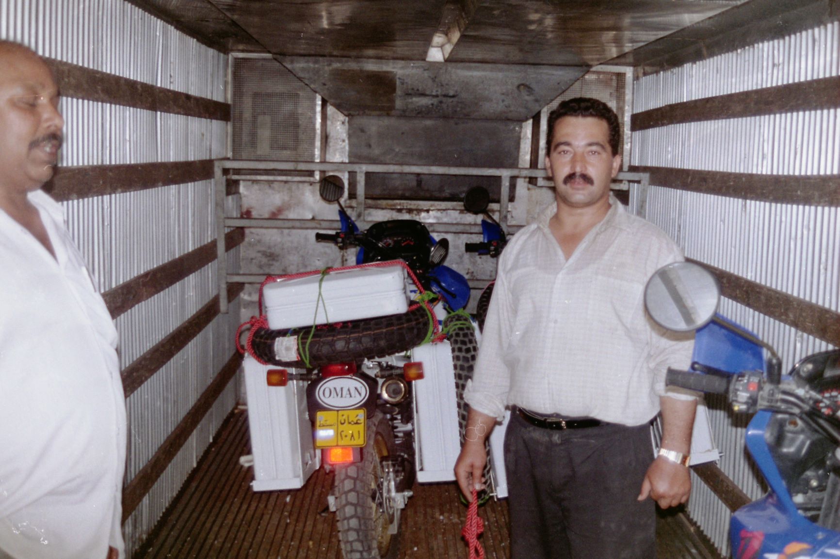 We set of from Muscat on 25th February 1995 and had been instructed by our employer that we must cross into UAE at the main checkpoint going to Dubai at Khat Matmalahat and make sure that our work visas were cancelled by the Omani authorities. On reaching the UAE border we were informed that 2 of us (Dave & Andreas) were not being allowed entry into UAE because they now needed a visa to enter since their Omani work permits were cancelled. Well we never thought of this before leaving since we had all been going to Dubai on a regular basis at weekends. We could not go back into Oman because our visas had just been cancelled. It was now 10pm and we were stuck in no mans land! Great start.