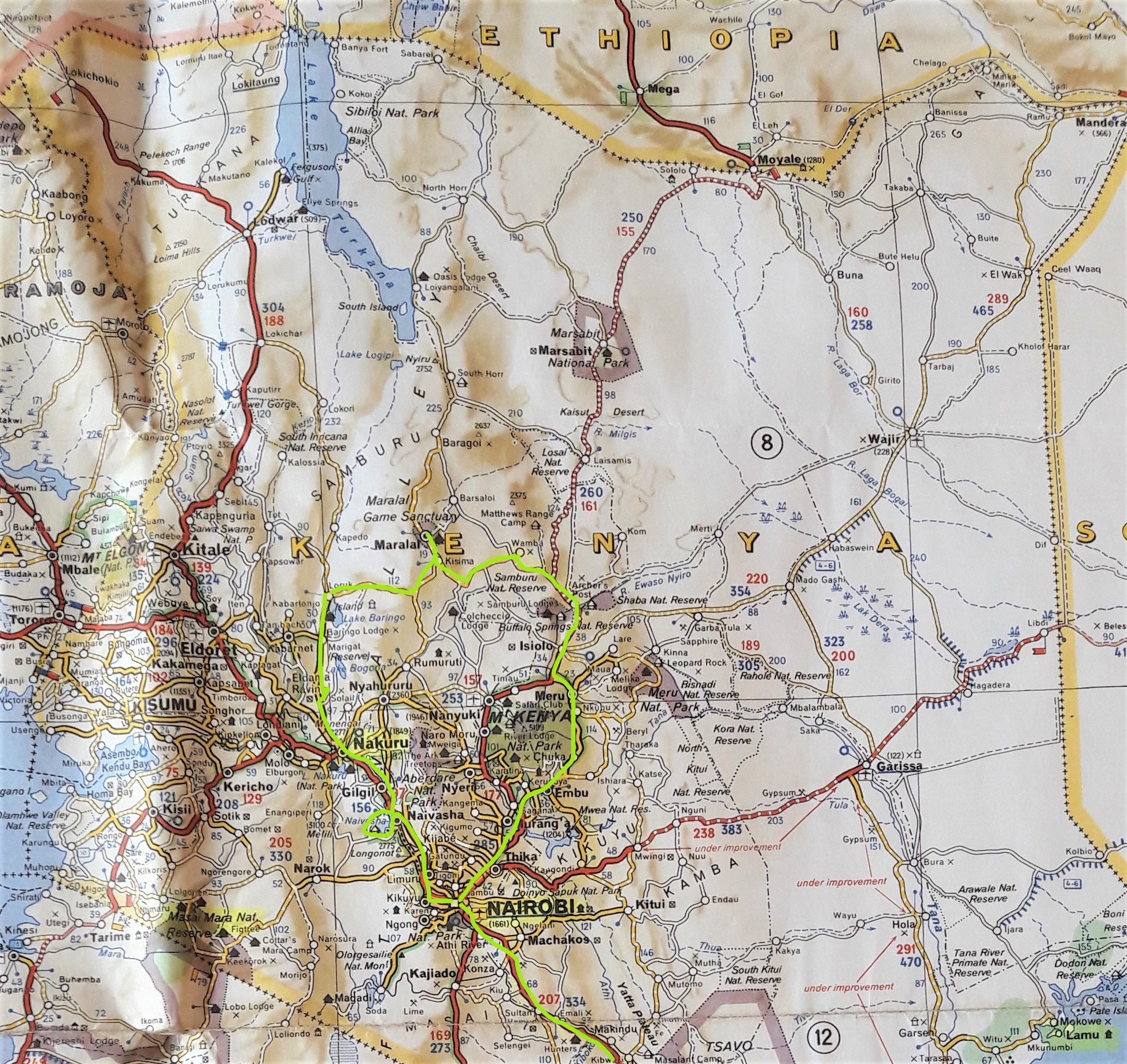 Headed down to Isolo and then round the eastern side of Mount Kenya via Meru and back to Nairobi. We needed a few days R&R after this.