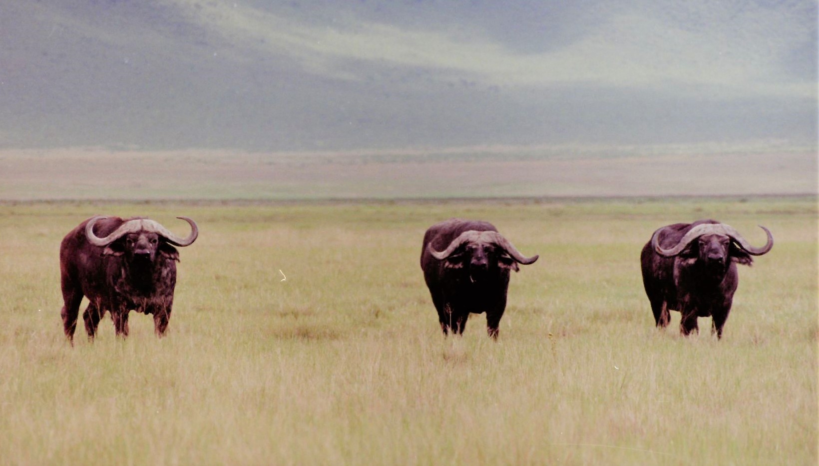 In Arusha we quickly located a cheapish safari company and booked to leave the next morning. Vehicles used were long wheel base Landrovers with 3 rows of seats and we were now 7 persons; driver, cook, 3 kiwi girls, me and Dave, packed in like sardines with all the camping equipment and food for 4 days in the bush. The night before leaving it rained and rained and when we reached lake Manyara found that the road was badly flooded and a little further on the road was washed away and replaced by a raging torrent. There was no way through this boulder strewn mess, we had to head back to Arusha. The safari company decide to send the vehicle on a very long route around the problem area and we will then cross the river by boulder hoping and transfer to the vehicle that has made a 24 hour detour. This was a great plan because once in the Serengeti it was almost deserted since most other safari companies had not taken the detour.