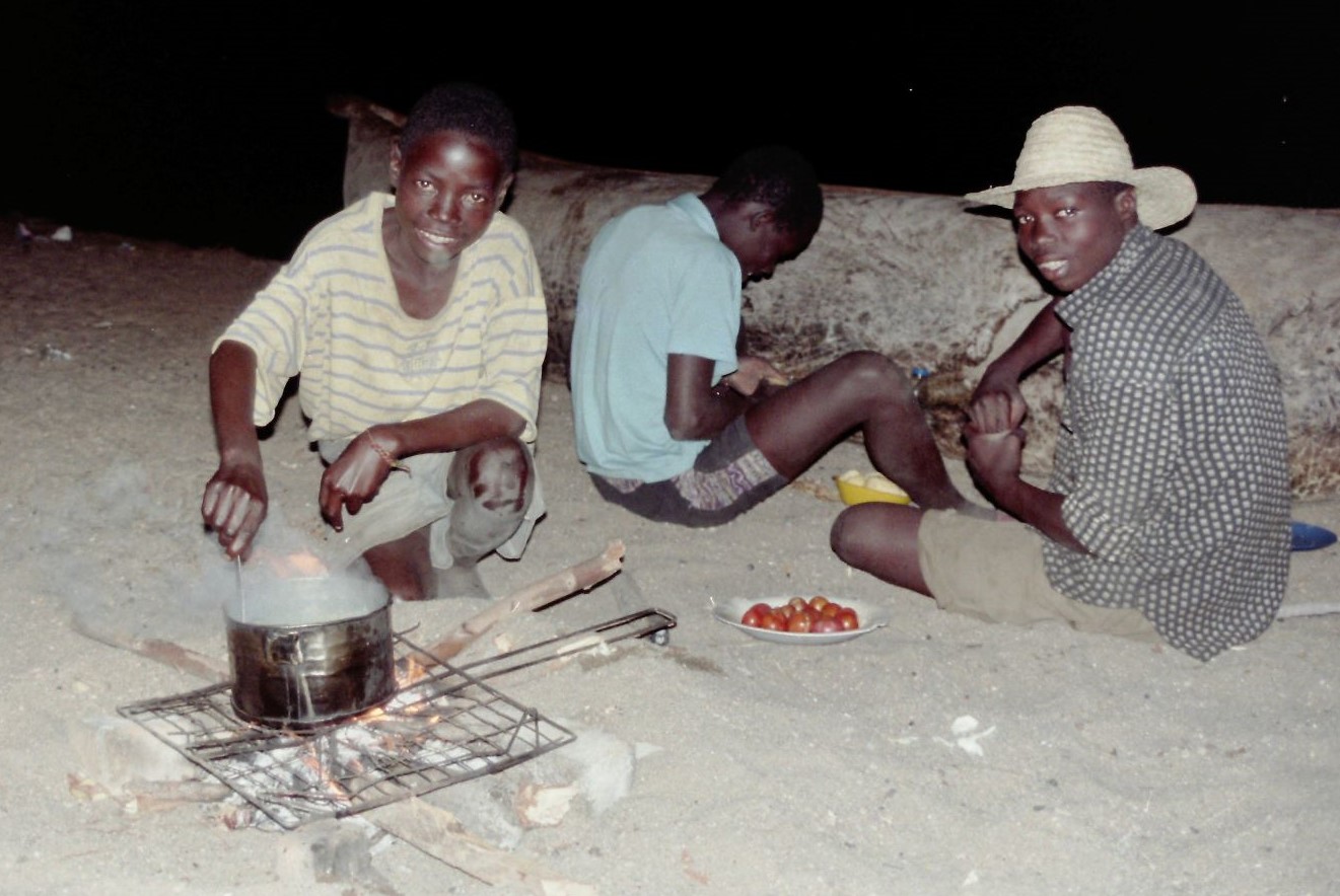 We rode along the lake shore heading south until Senga bay and ended up camping just in from the lake and a local lad cooked us grilled fish, chips and salad, all prepared on the beach, ended up staying four nights and Godfrey cooked for us each night.