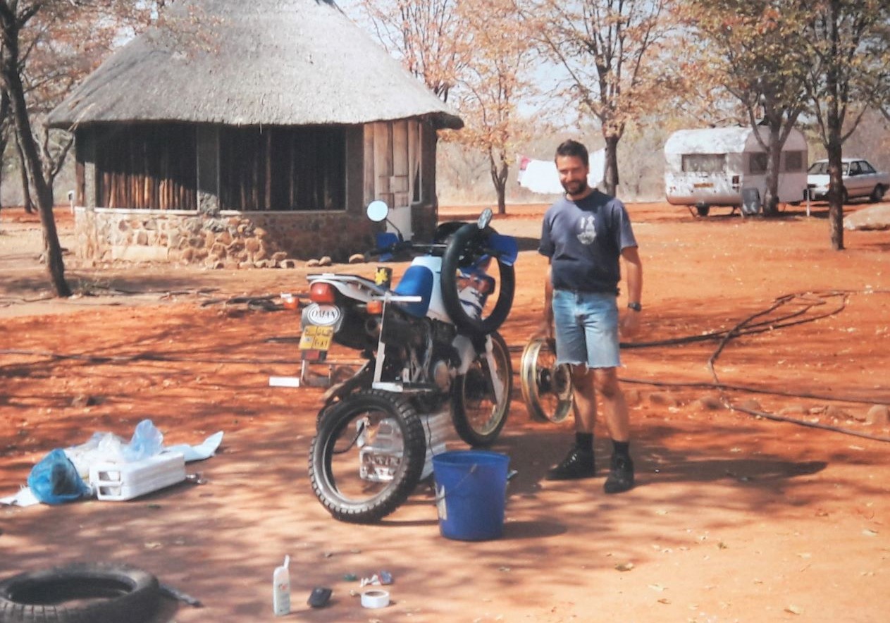 Bulawayo was a lovely town with big wide streets, a good natural history museum and Friar Tucks Steak House where we had a blowout meal. From Bulawayo we rode to Victoria Falls in the day, around 450km and camped in the caravan park. We spent a few days enjoying the sites around Victoria Falls, eating plenty of large buffet evening meals. We also did some further maintenance of the bikes, 13,000km covered. I needed to replace the rear tyre.