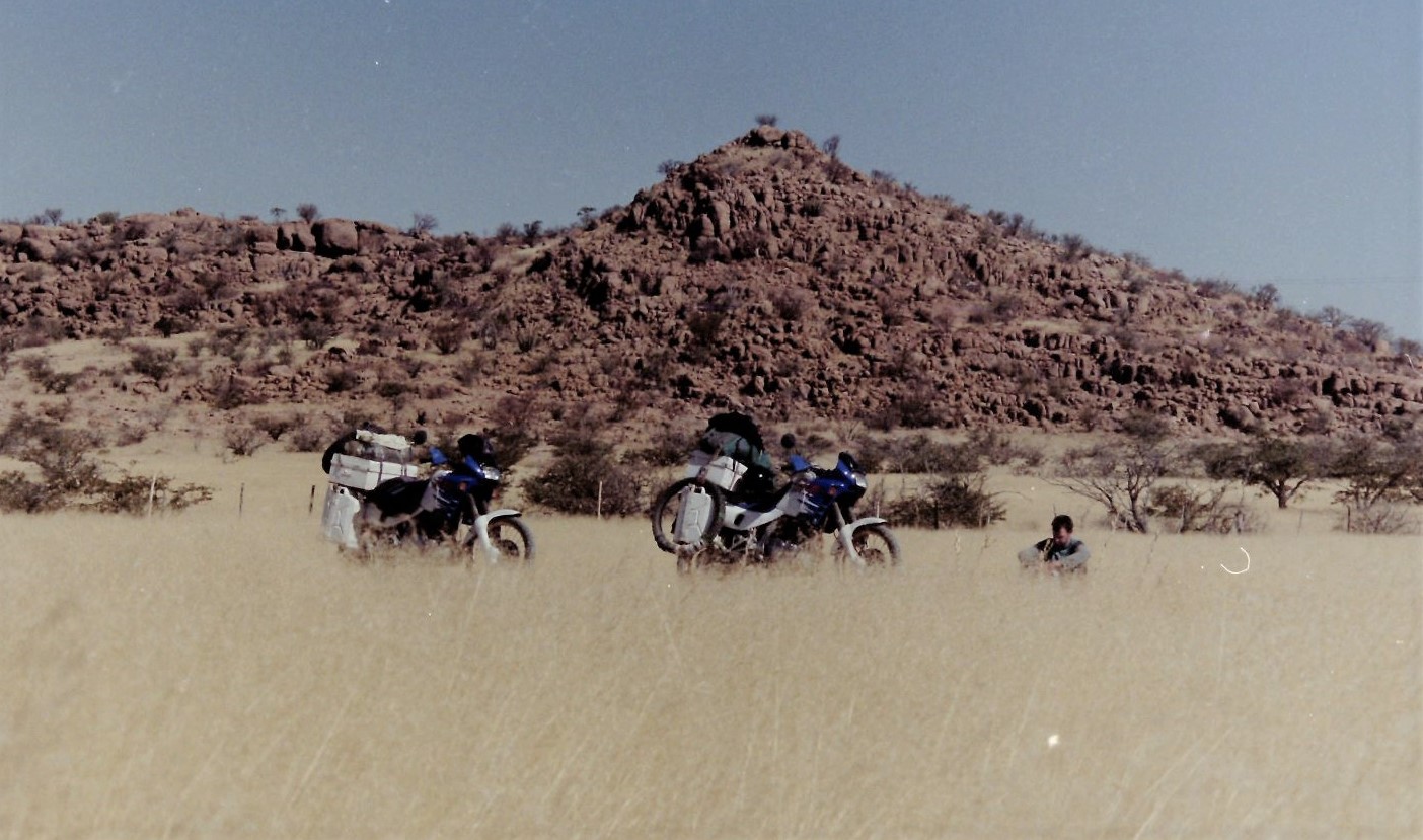 Once 80km inside Namibia the road was tared so progress was good and we decided to press on all the way to Windhoek, arriving at 7pm on the second day and having to camp in the garden of the hostel since all rooms were full. Next day we moved into the hostel for a rest. Dave was actually quite unwell remaining in bed for the next 2 days. Namibia is a fantastic country and our bikes were absolutely perfect for the next few weeks that we spent exploring..to be continued.