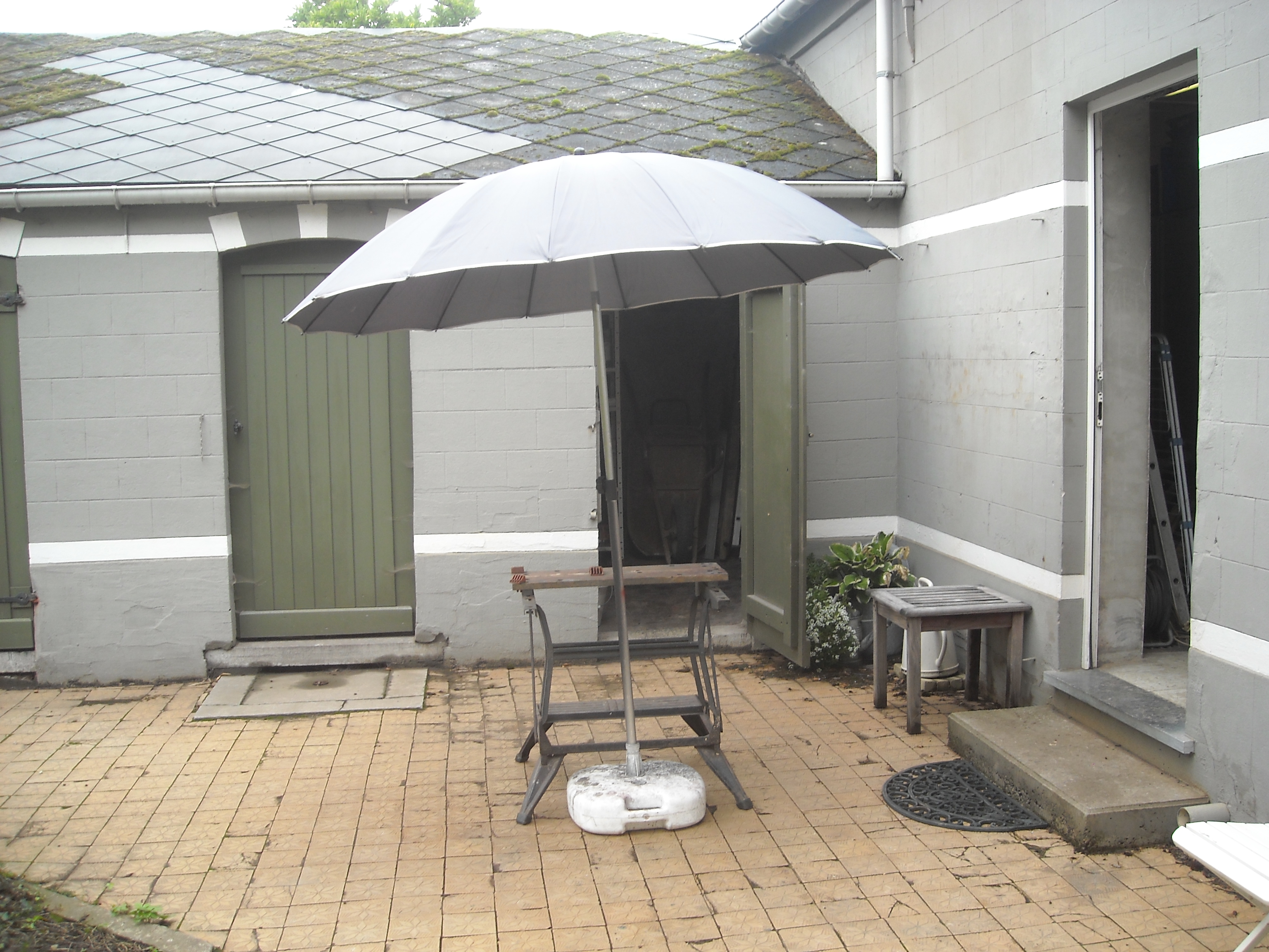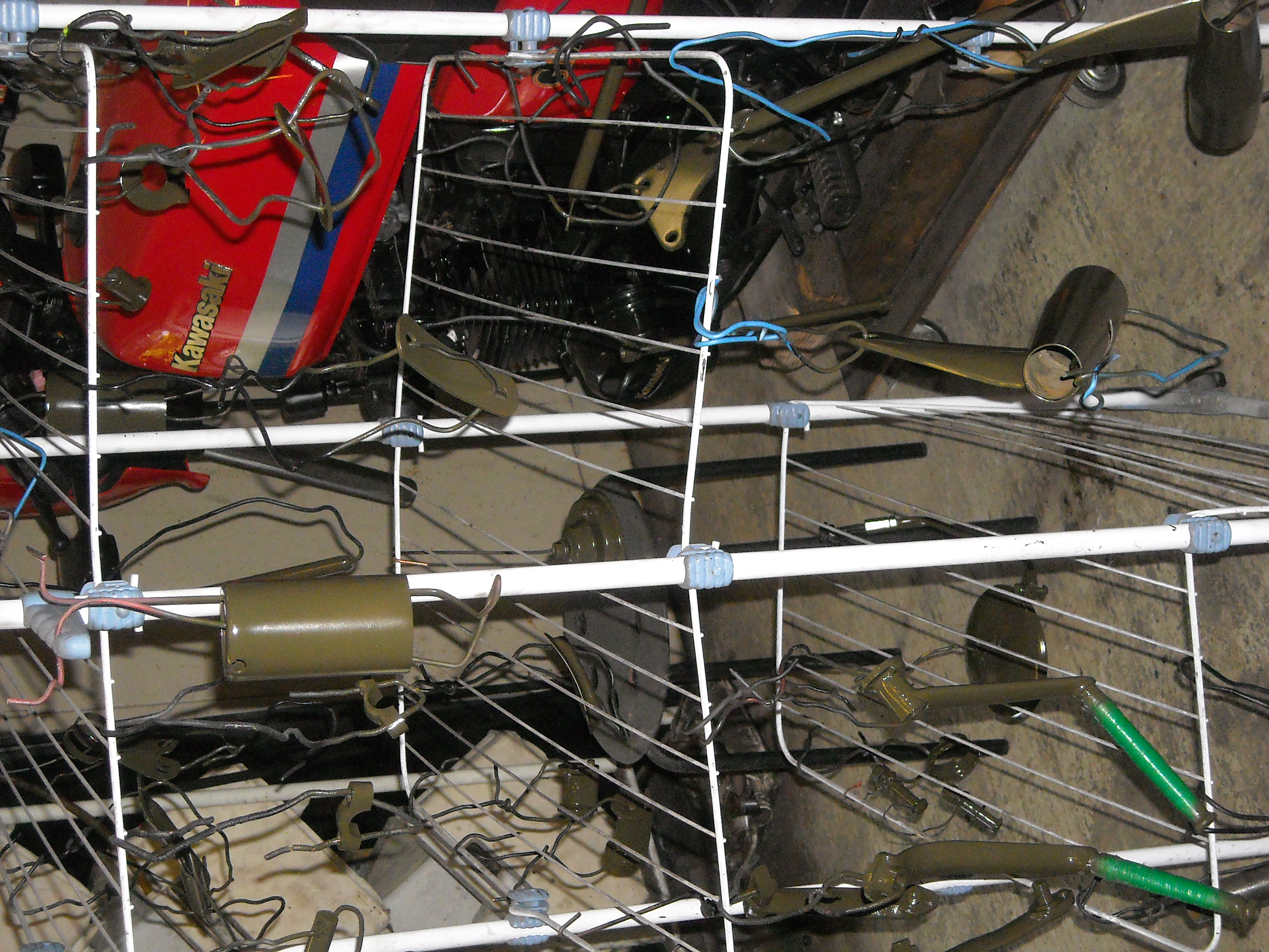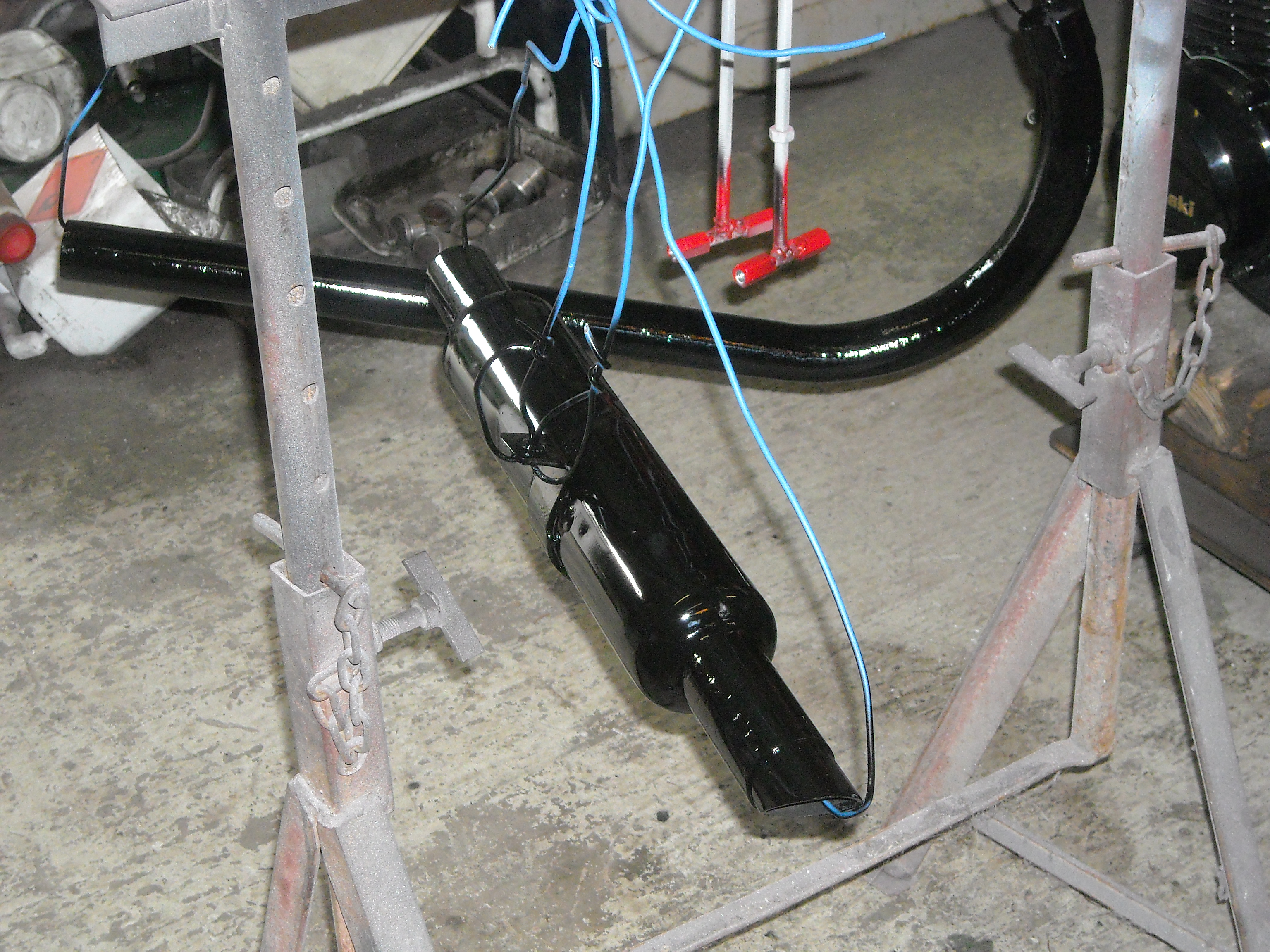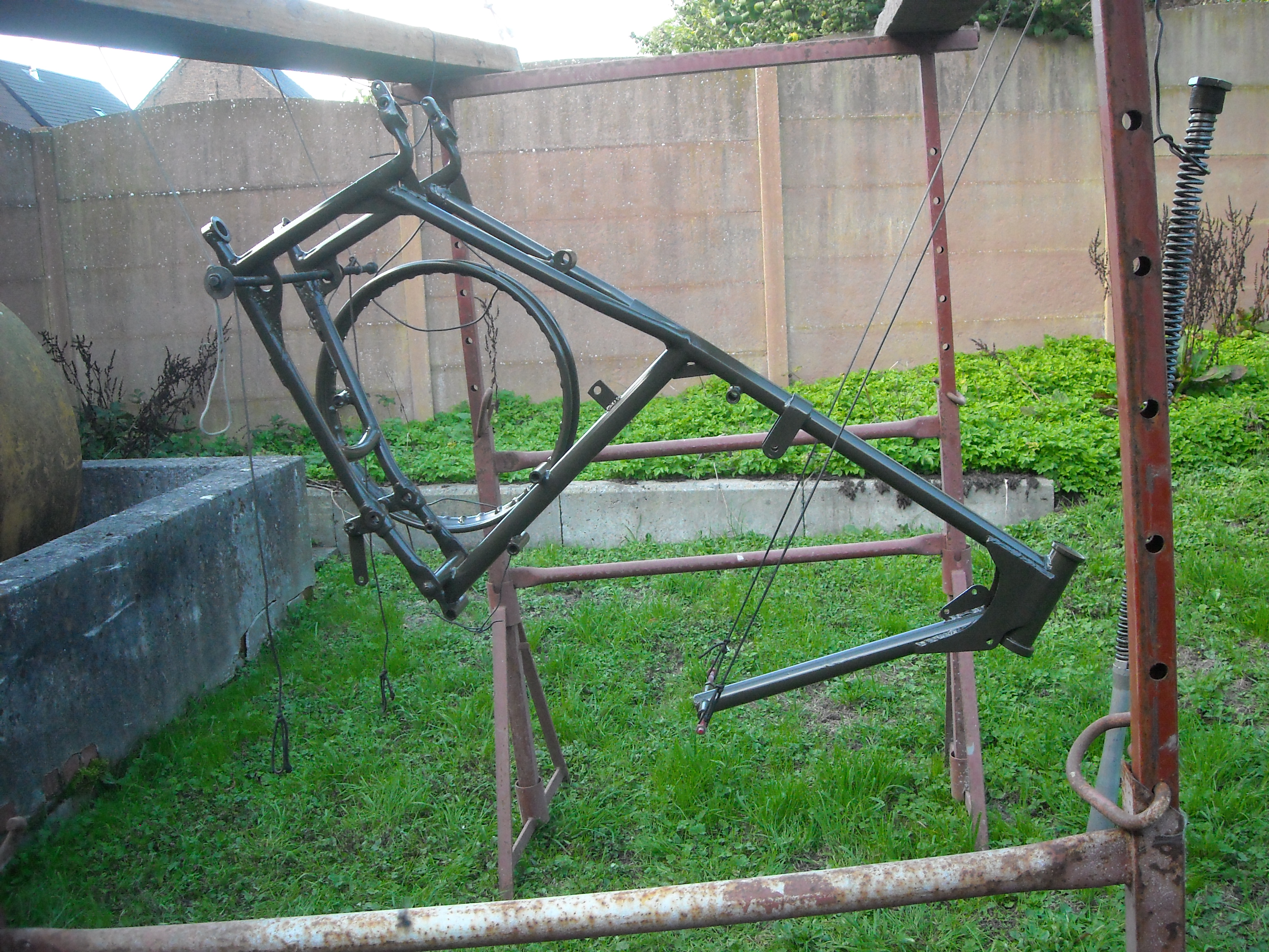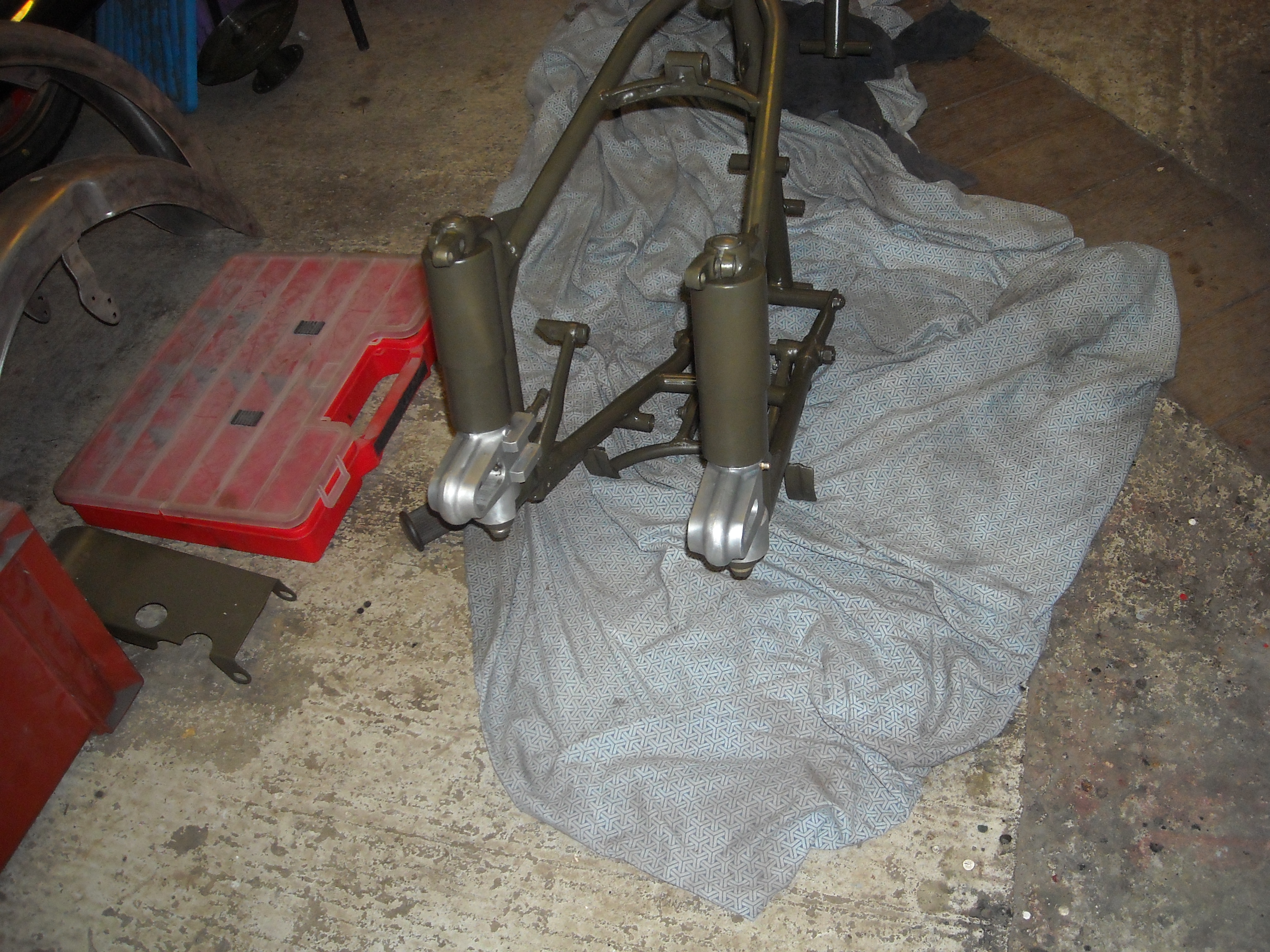 I had to build a construction in the garden to paint the frame because the Gpz750 is still standing in my workshop.