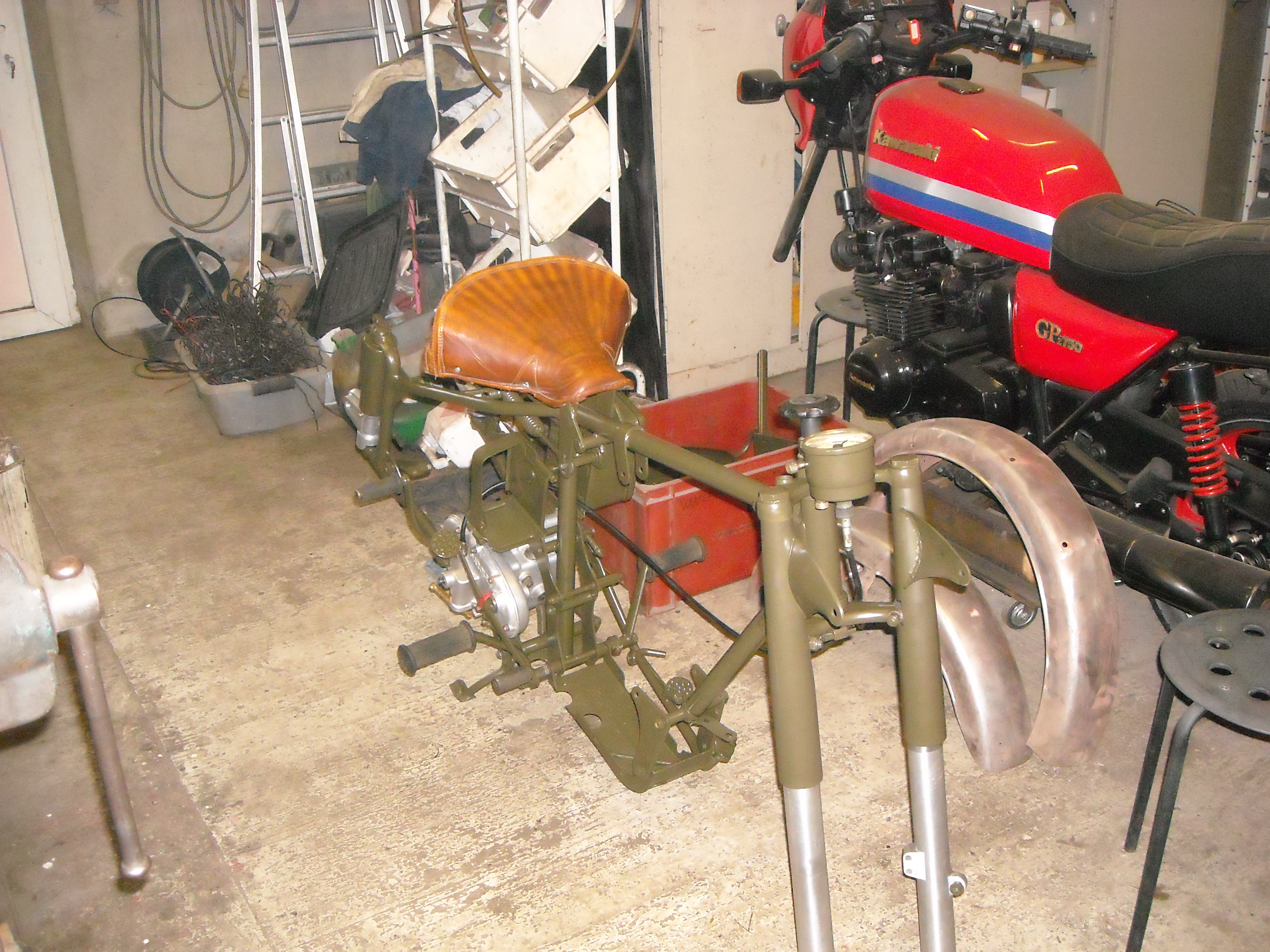When I told Bart that it was a very complicated bike he replied to me that he had heard that before from others who were in the restoration of old military vehicles. I found out that you have to think twice before bolting a part on the frame ...you must use the correct order of things or you risk to undo the work because it's in the way to put another part on.