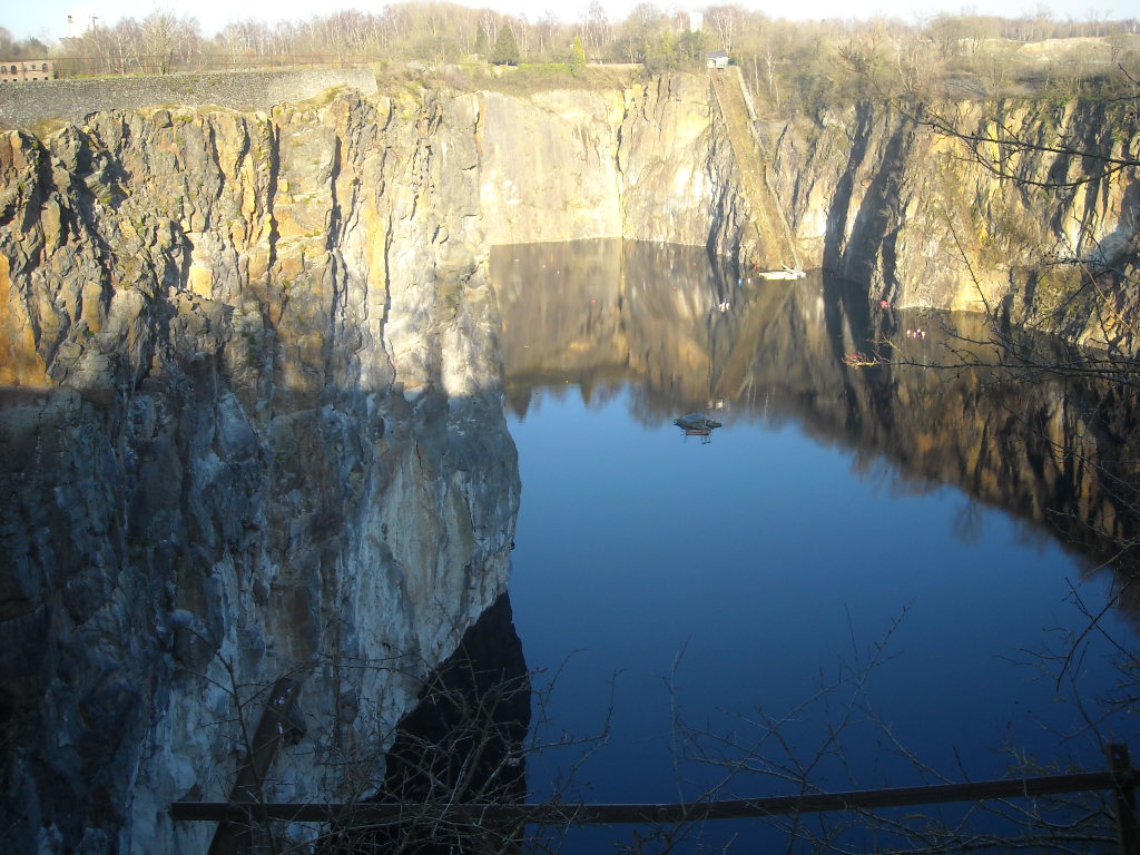 And this is what's behind the stone wall. It's an old abandoned quarry filled with water and used by a local diving club to practice.
