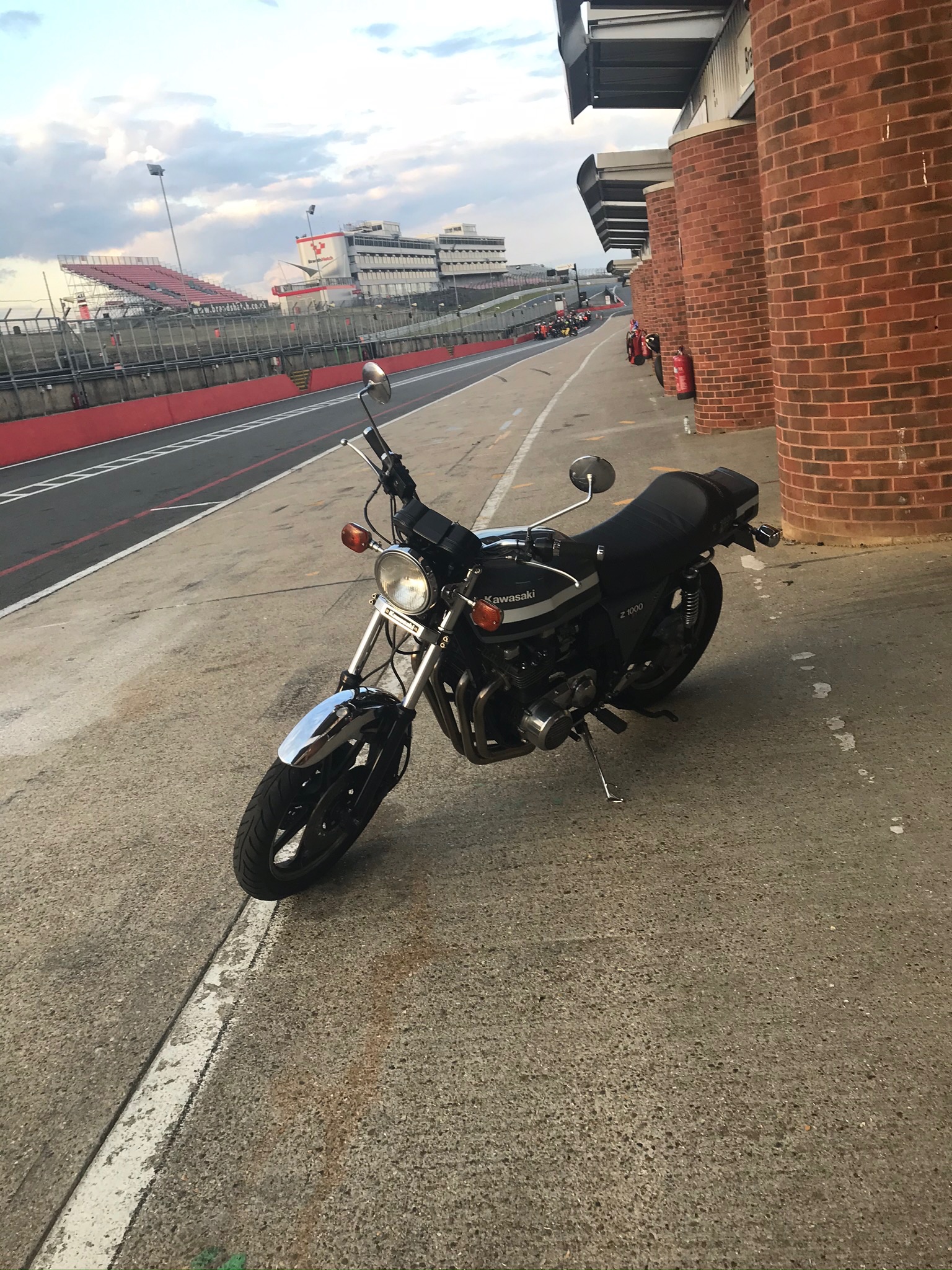 I was helping a couple of mates at track evening at Brands this week couldn’t resist taking a quick picture of my bike in the pit lane