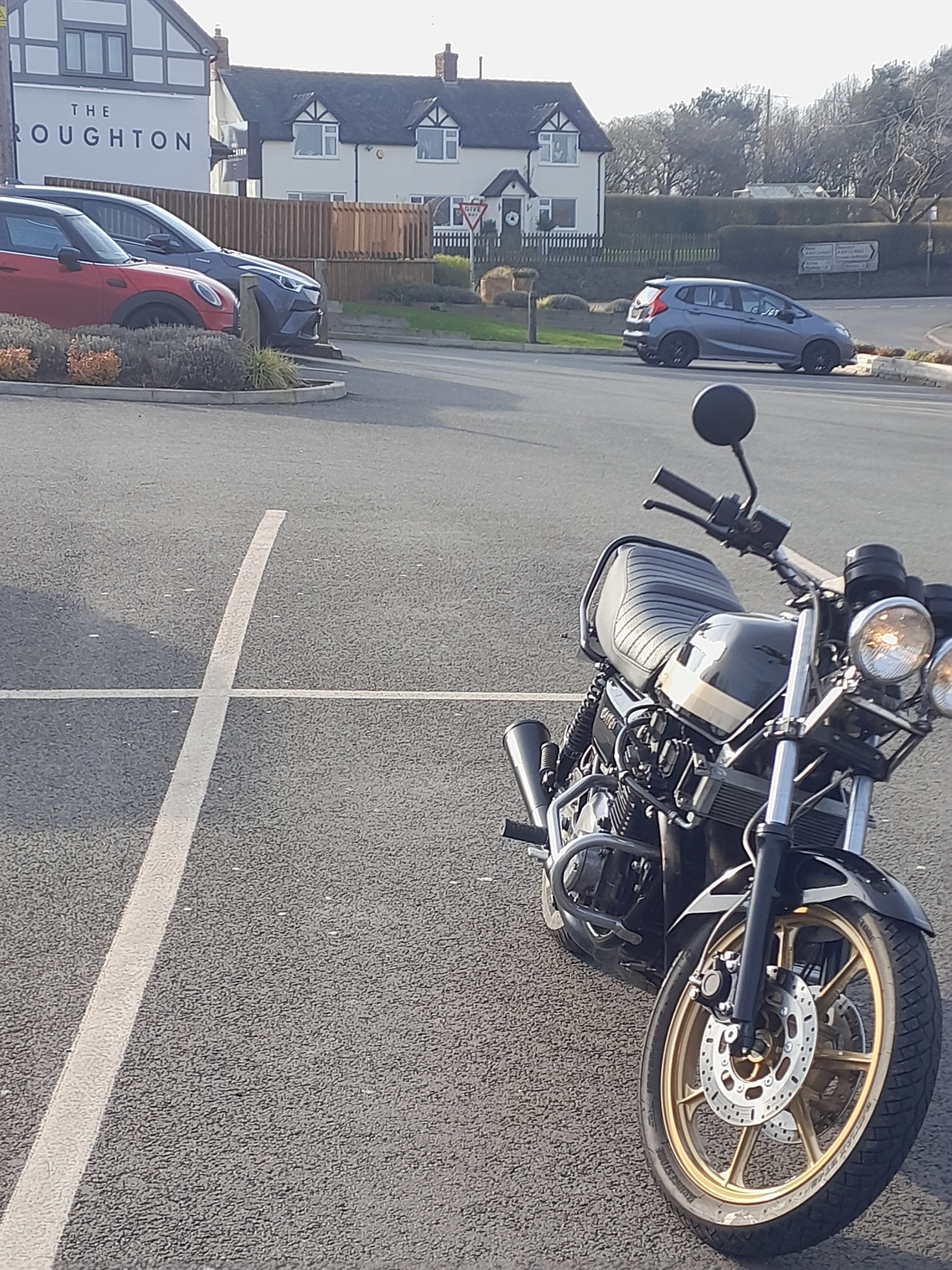Spotted the chance of dry day yesterday. I don't mind the cold or wet but not keen when there has been salt on the road as I've never been the best bike cleaner(mind you im much better since I've carried out a refub that cost far more than any bike I've ever purchased). 80 odd miles and the J ran faultlessly. I couldn't find a back drop with a mountain view or village green so went for the next best thing, a pub.