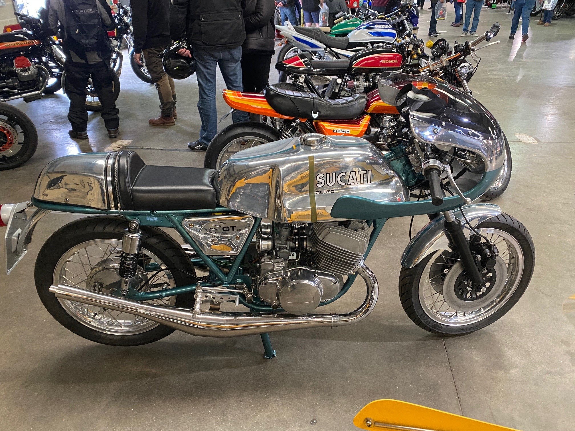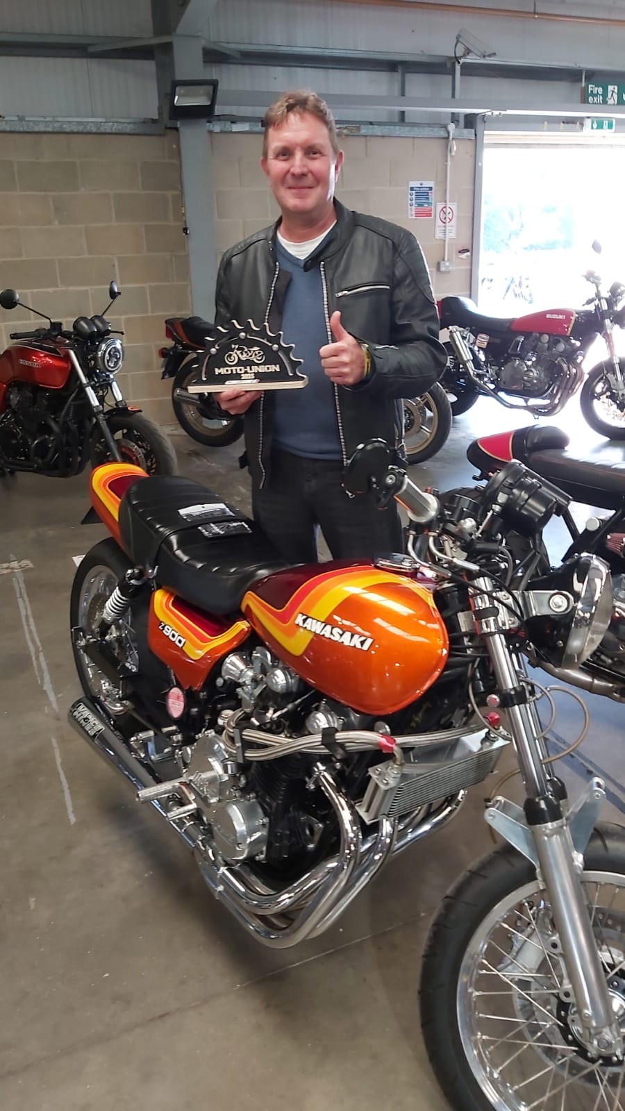 On Sunday, I rode her to the Moto-Union, classic Japanese and Italian event at the Ardingly Showground in Sussex. It's a relatively new event and the quality of bikes on display was superb. It was lovely to come away with a trophy as the bike won `Best Modified`
