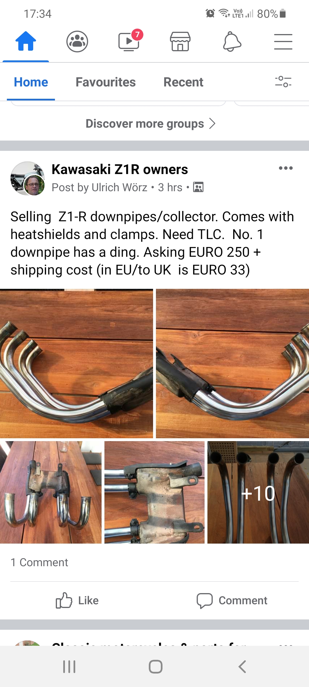 If anyone knows of it has an original Z1R exhaust they are thinking of selling please let me know. Missed two recently as work got in the way!