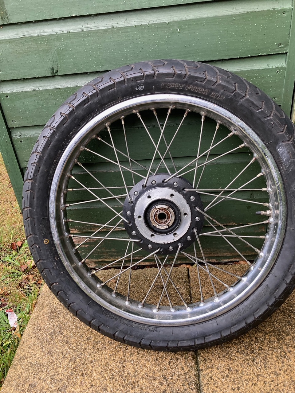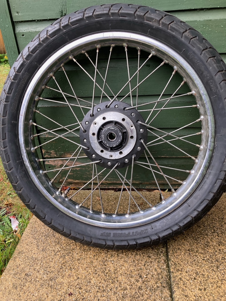 £25 - just hub posted. £35 - whole wheel posted. DID rim, Bridgestone Spitfire tyre comes with the wheel and is good condition.