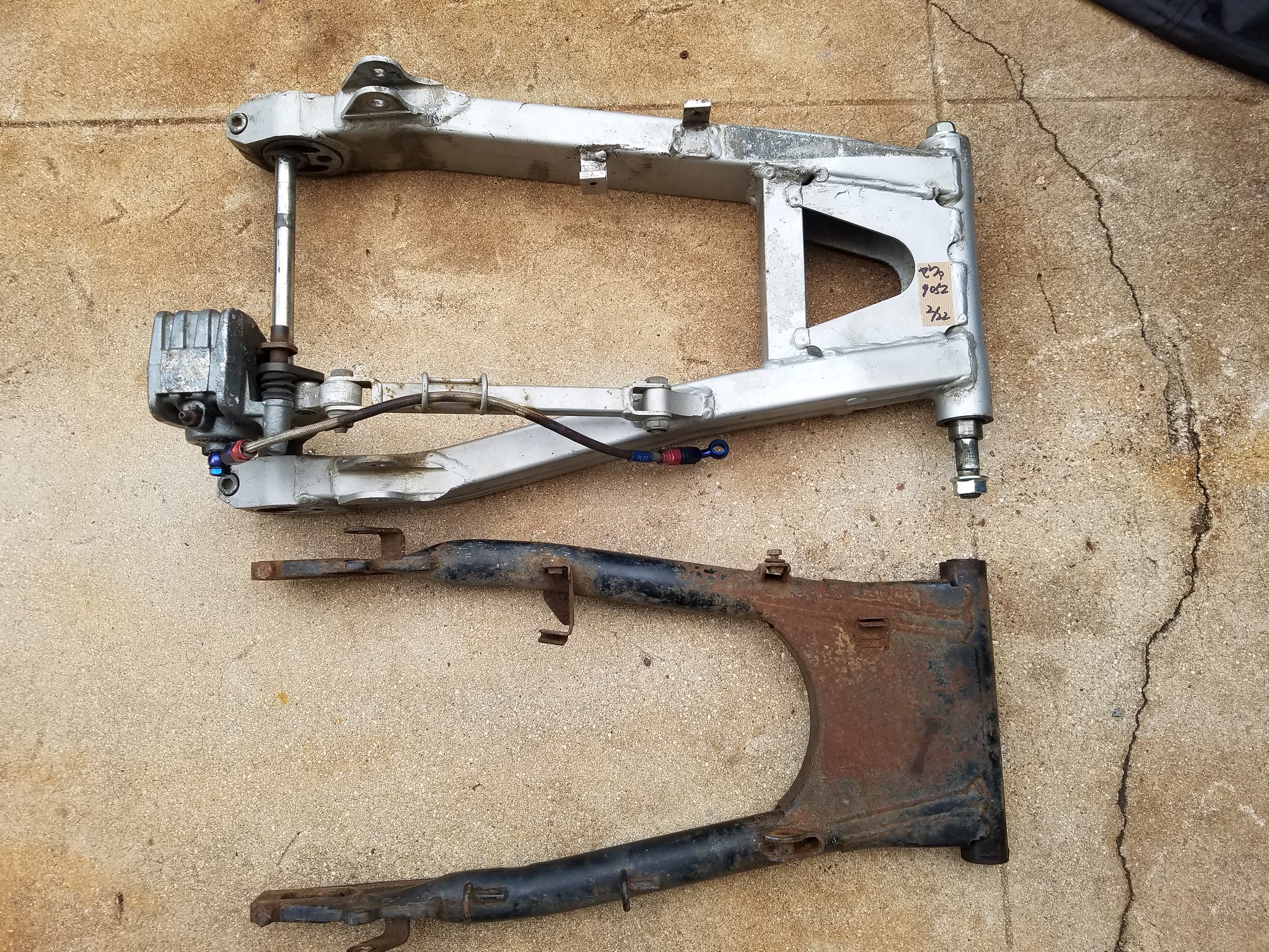 I have a gpz550 mono shock (unitrak) arm here if you’re happy to weld on a pair of twin shock mounts? Let me know if you’re interested and I’ll send you some pictures over