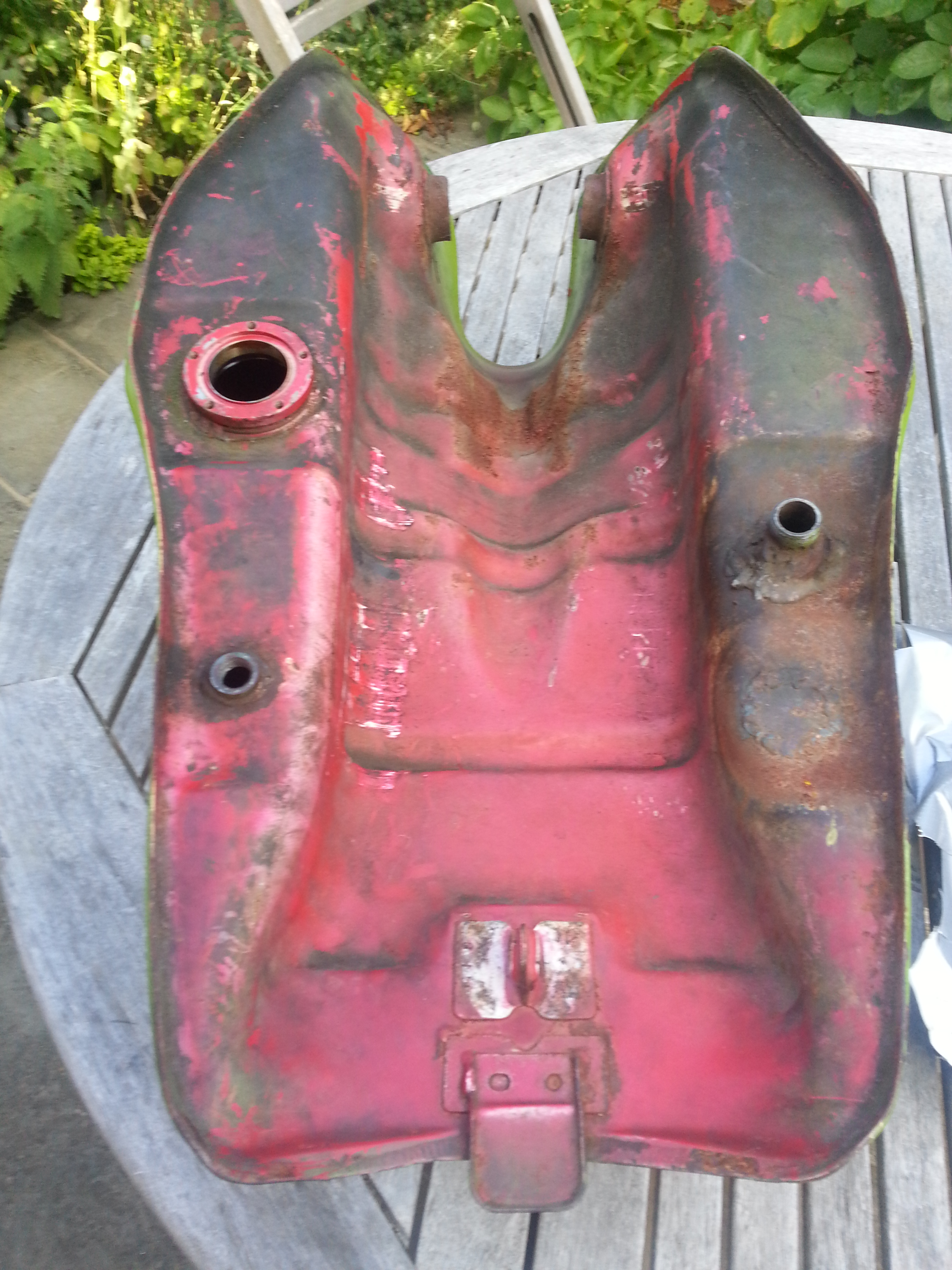 The tank has no good fuel taps although I might have one or two knocking around that could be cleaned up. It looks like the tap position on the RHS has been moved forward at some point in the past.