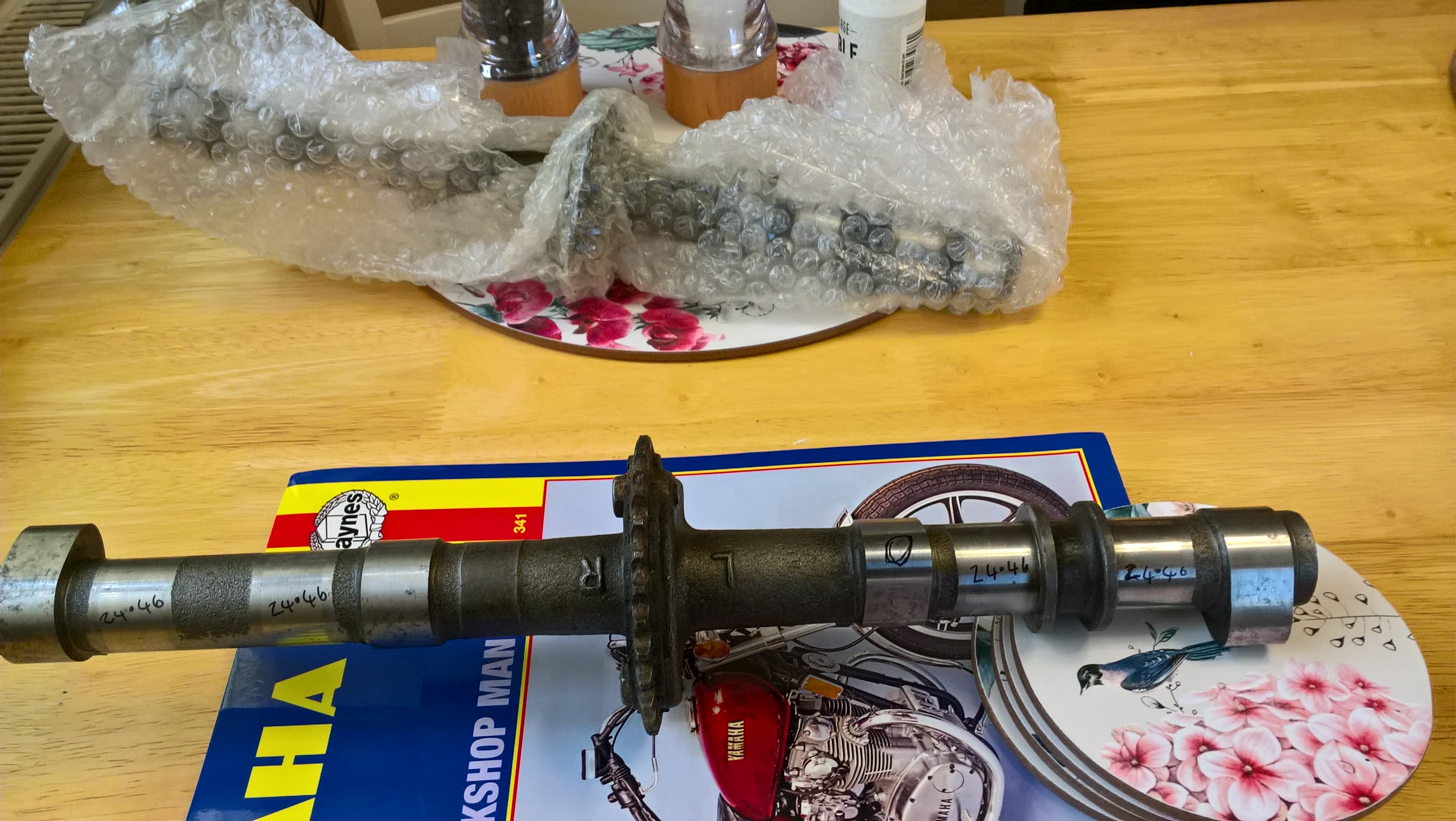 I have an inlet cam it has some marking and two small pits but they won't affect the running, 24.46mm on all 4 journals,you can have it just pay postage.