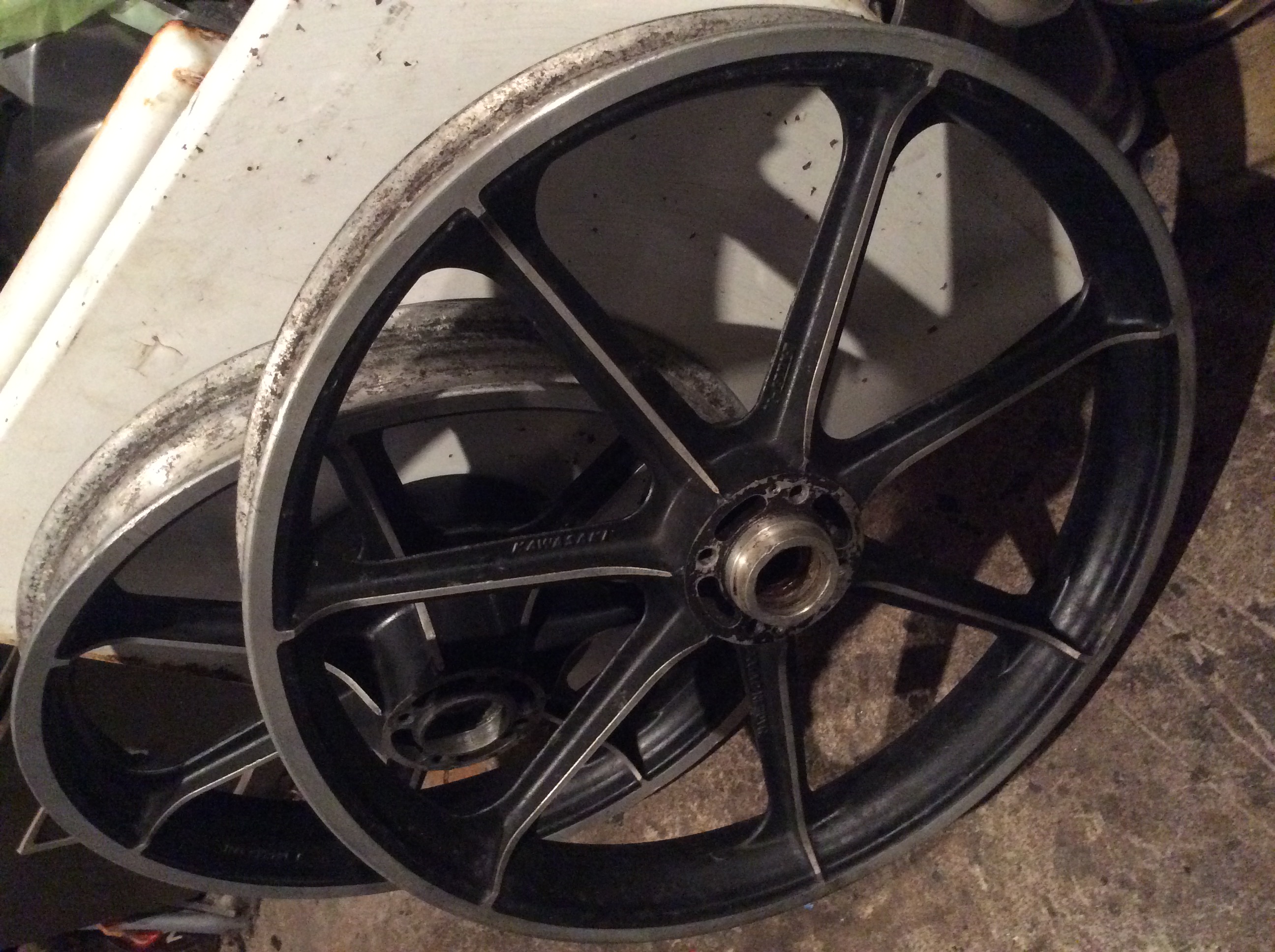 I have a 19x2.15 seven spoke cast wheel. It’s not a Kawasaki wheel, maybe a Melba, not sure, but very much the same as the Kawasaki ones.
